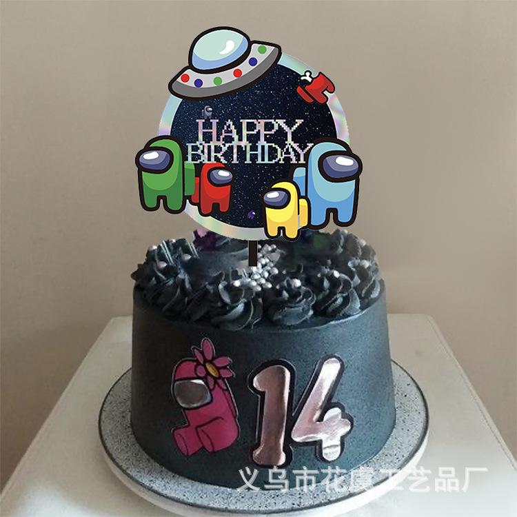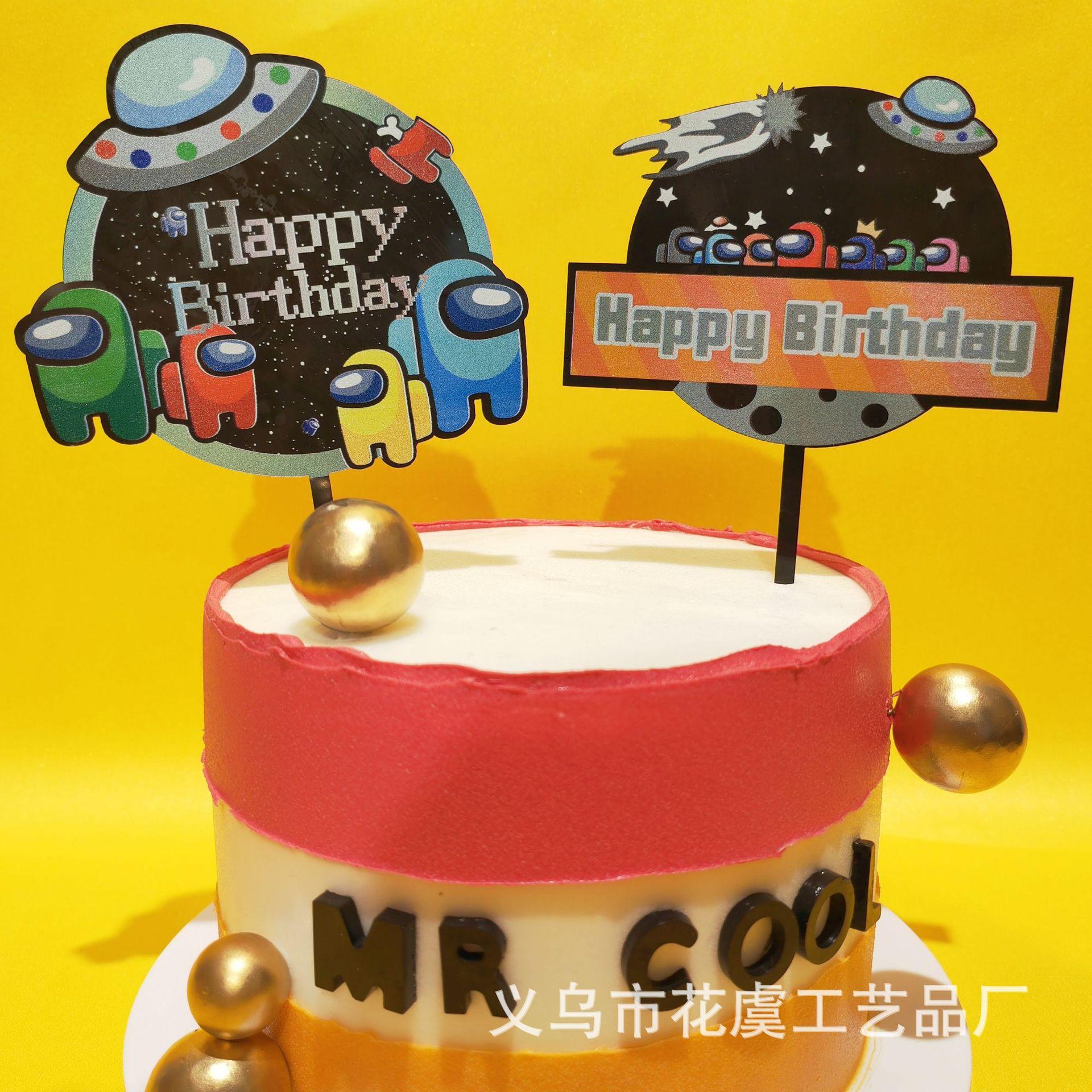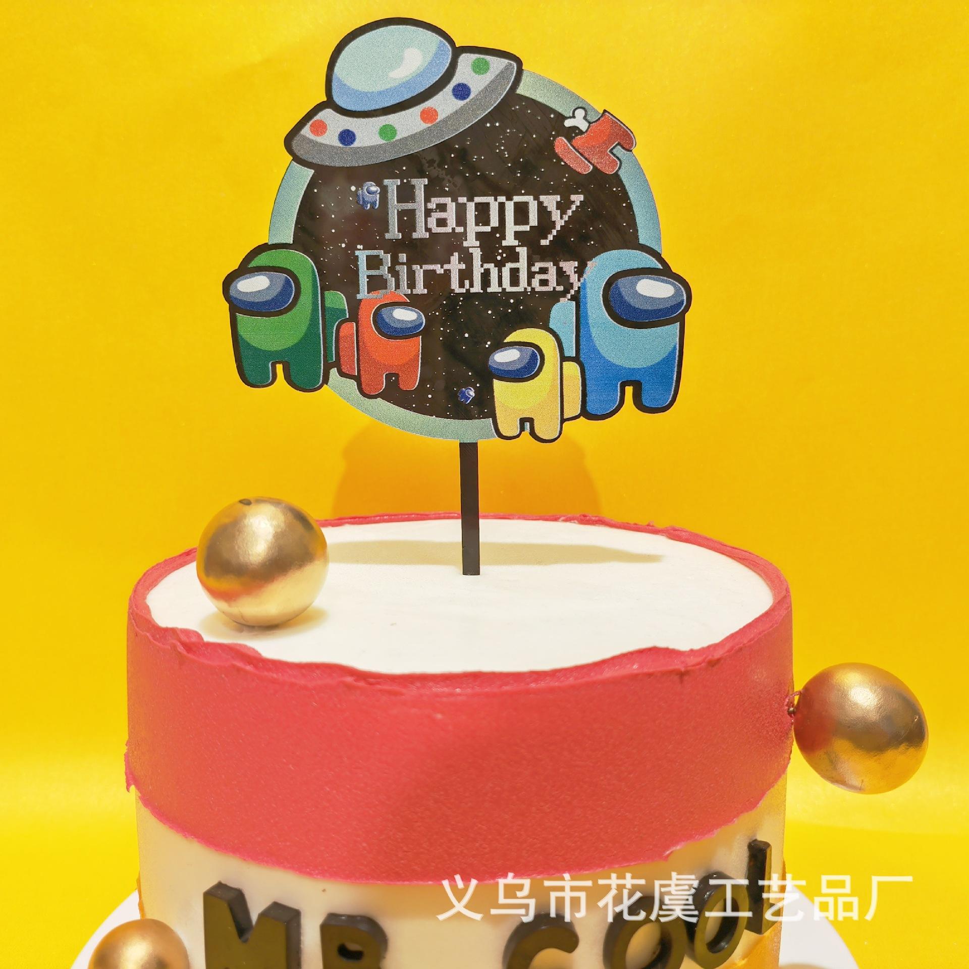 Compre Decoração personalizada para bolo OEM com tema de jogo de lobisomem espacial Among Us, inserção de bolo de acrílico no atacado no Joom.pro