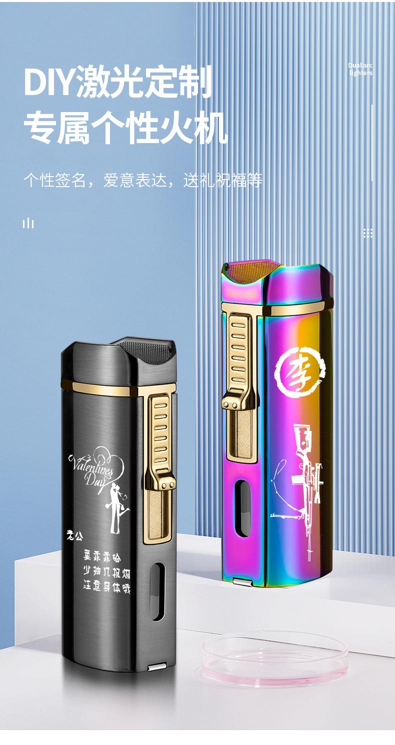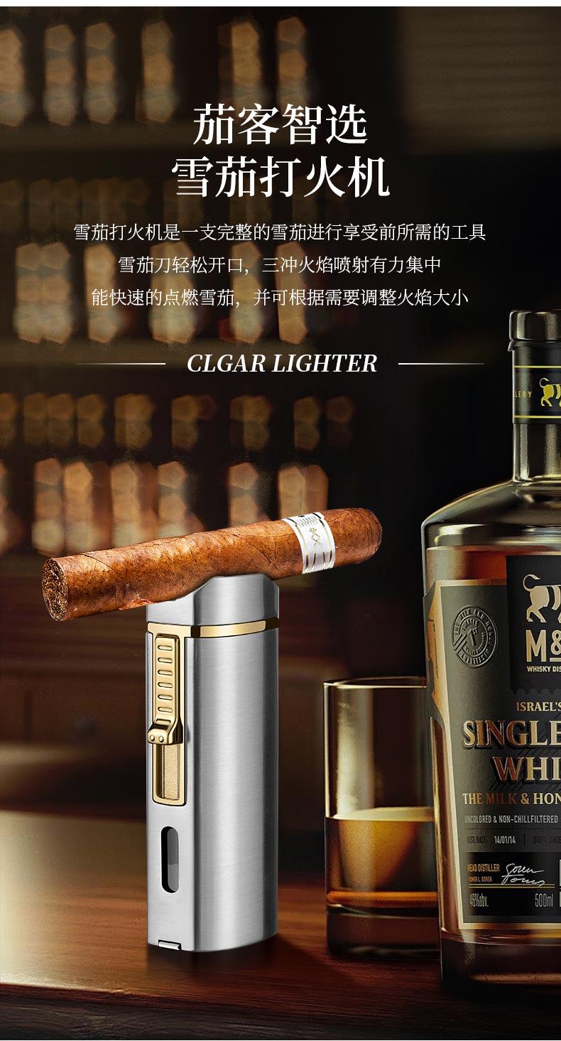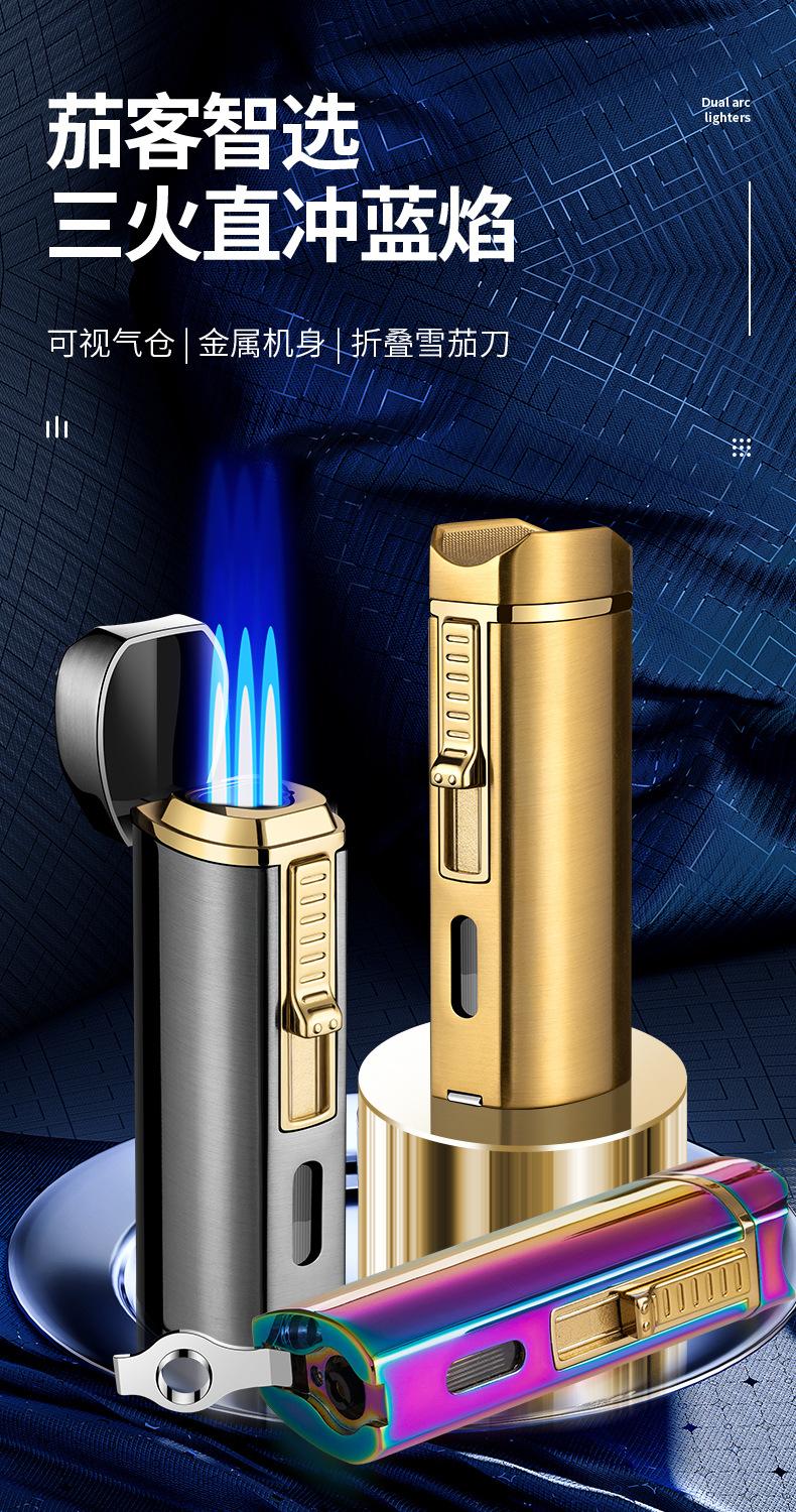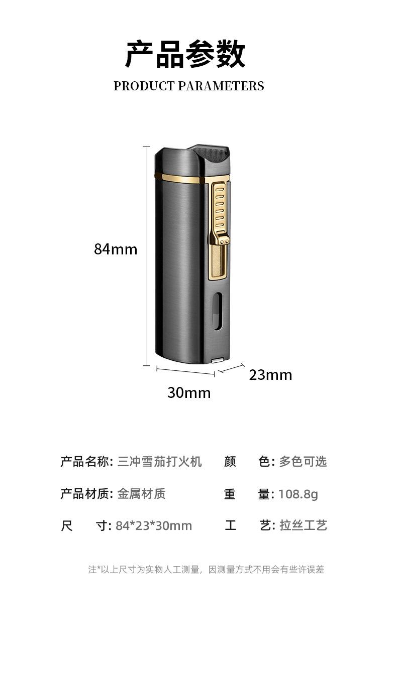 Varejo Atacado Metal Três Chamas Reto Simples Isqueiro de Charuto Fogo Forte Resistente ao Desgaste À Prova de Vento Fogo Duplo
