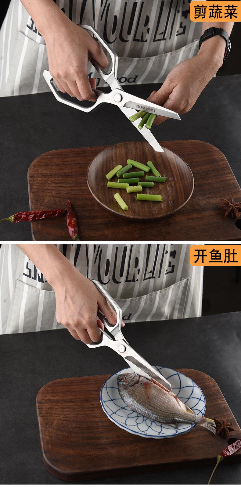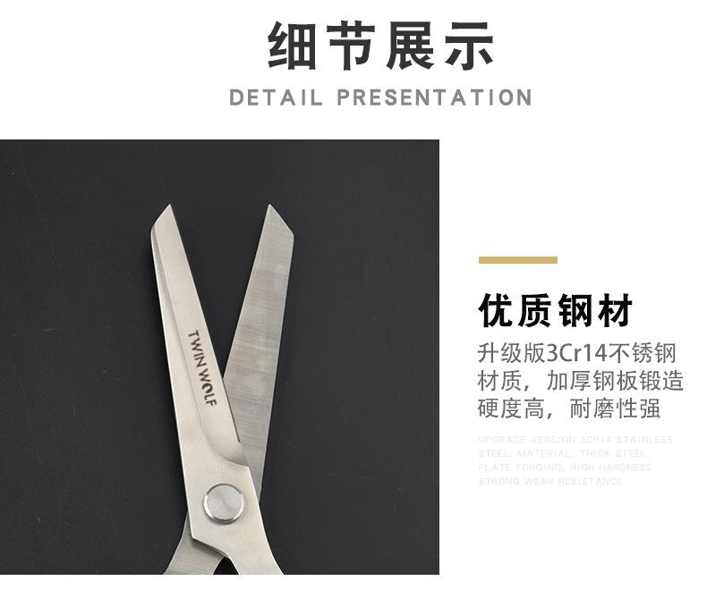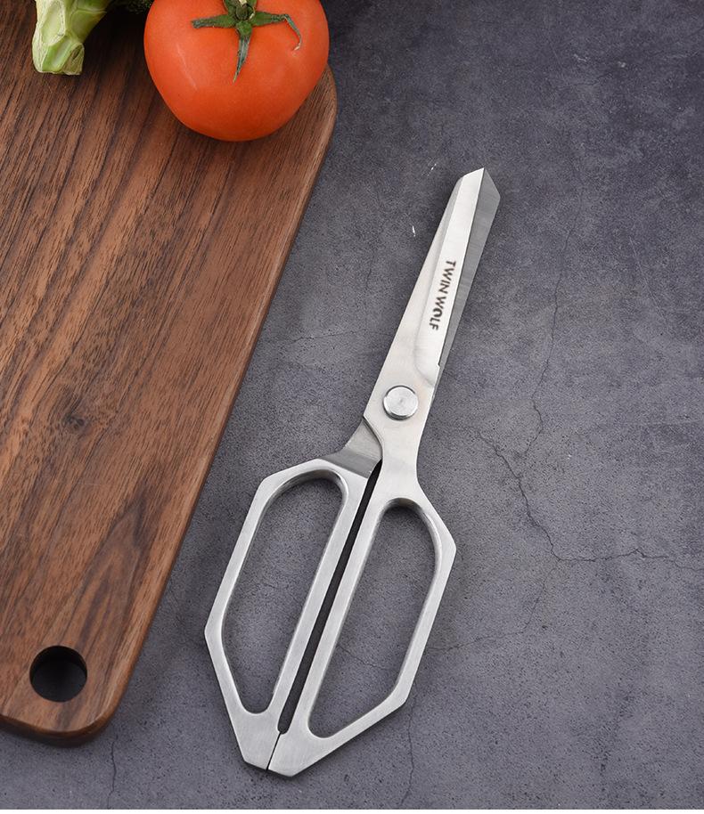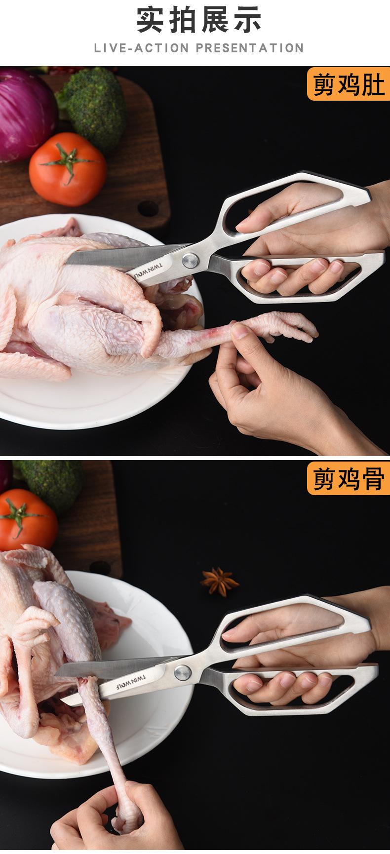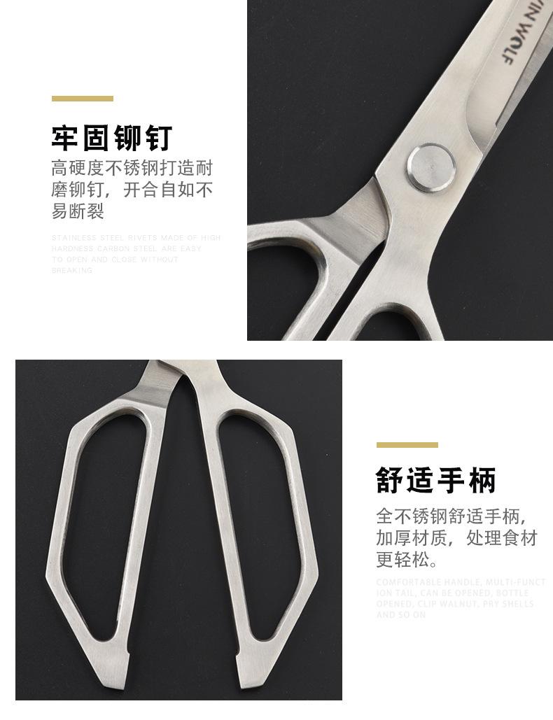 Venda direta de tesouras de cozinha totalmente em aço de cabo grande tesoura de osso de frango alimentos tesoura vegetal aço inoxidável tesoura forte fornecimento transfronteiriço