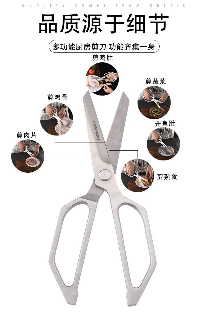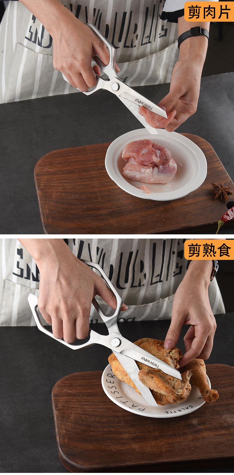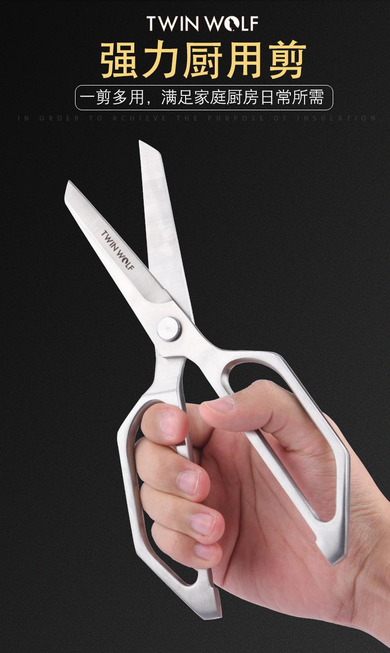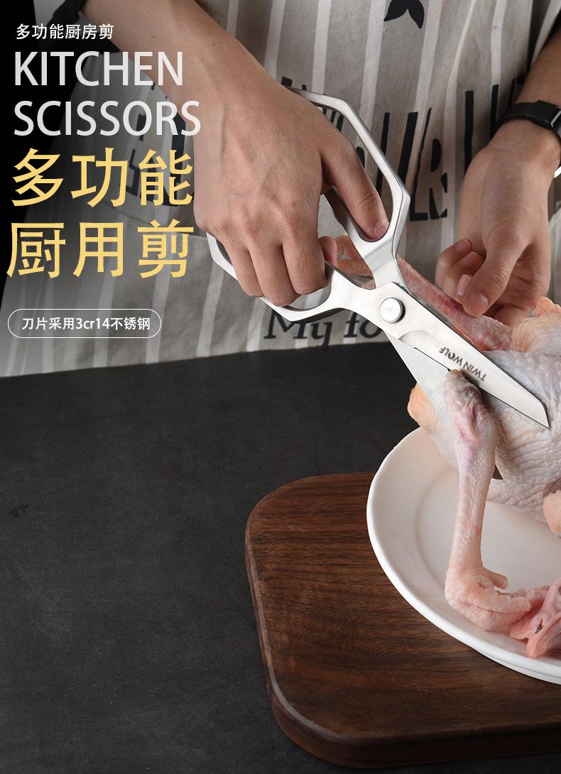 Venda direta de tesouras de cozinha totalmente em aço de cabo grande tesoura de osso de frango alimentos tesoura vegetal aço inoxidável tesoura forte fornecimento transfronteiriço