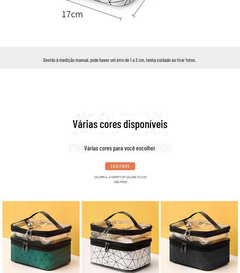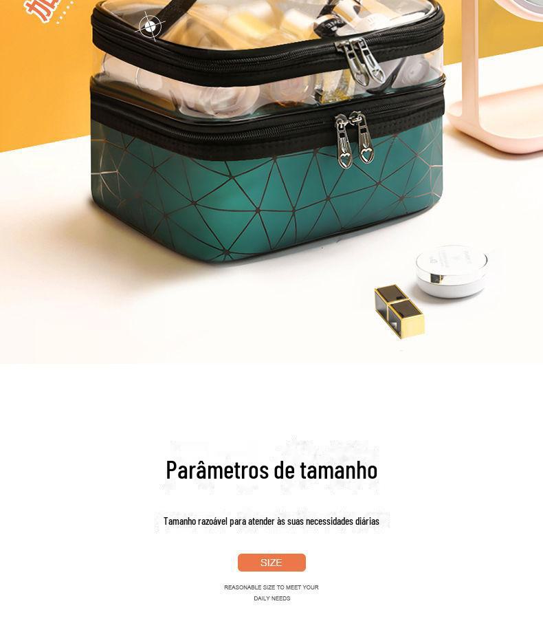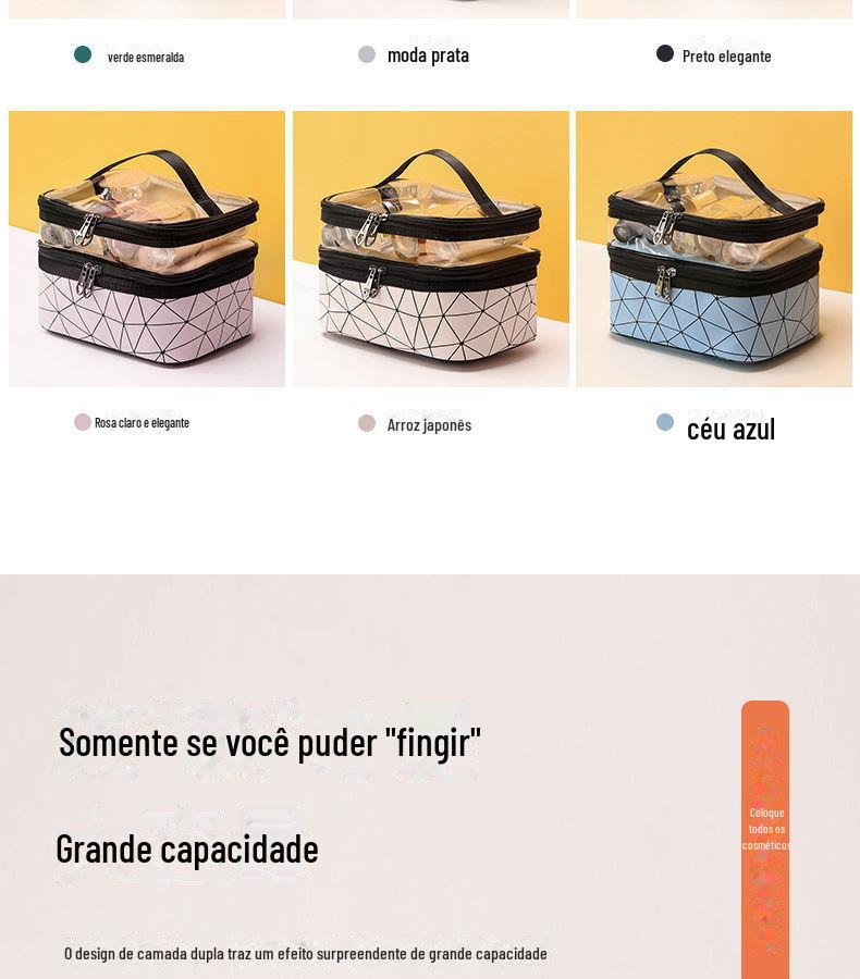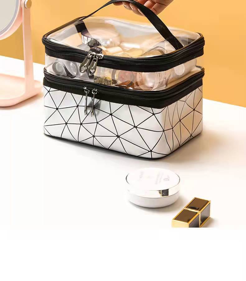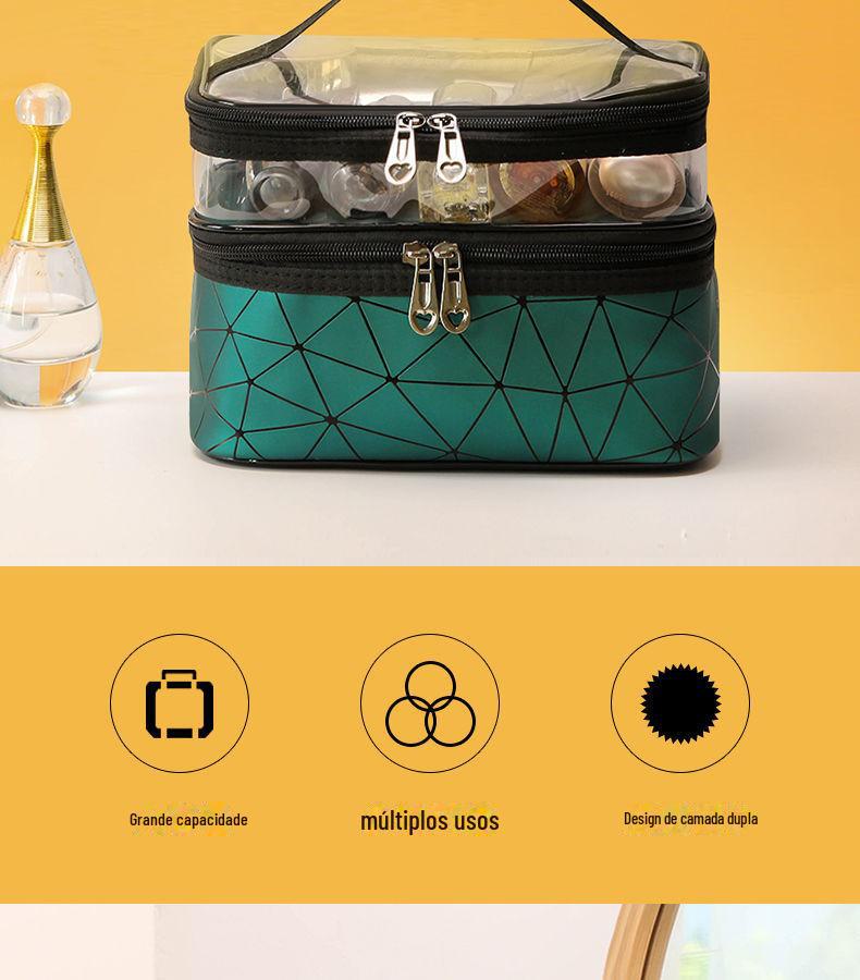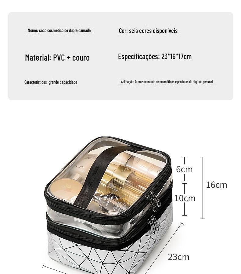 Nome do produto: Bolsa cosmética de dupla camada de PU diamante