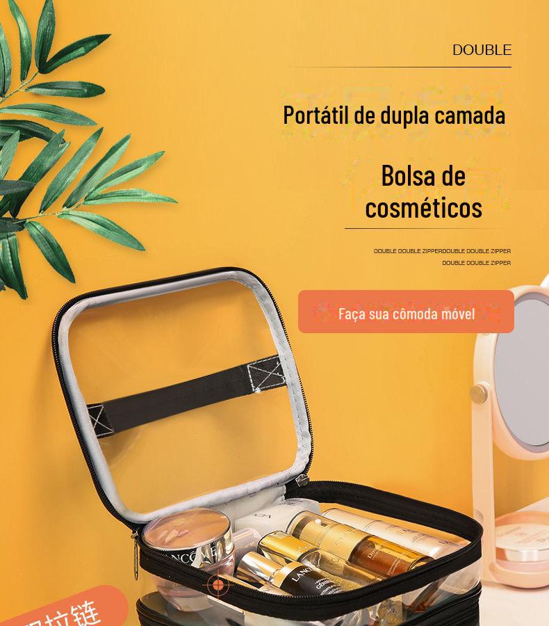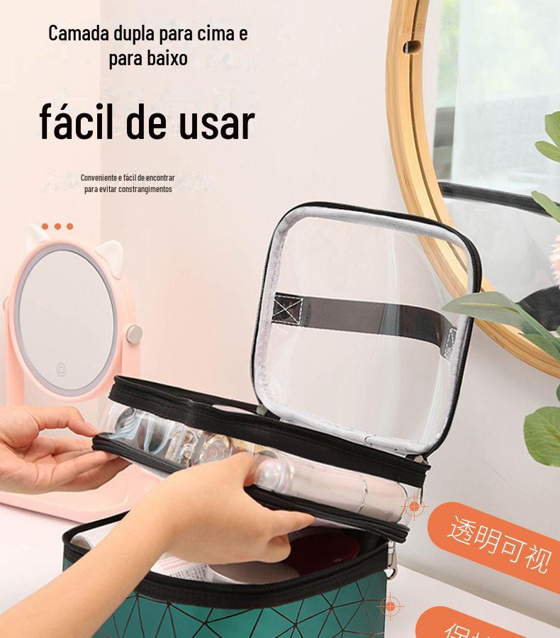 Novo saco cosmético de camada dupla portátil de grande capacidade impermeável multifuncional portátil de viagem saco de armazenamento de cuidados da pele saco de lavagem