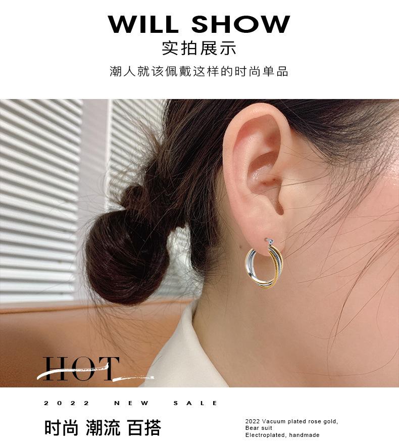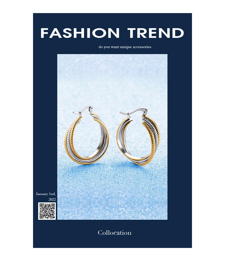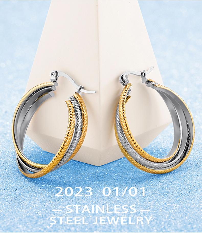 Brincos de aço inoxidável dourados com padrão de pele de cobra estilo europeu e americano exagerados, joias populares personalizadas com fivela de orelha em formato de círculo por atacado