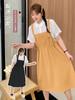Vestido Colegial Redutor de Idade Falso Duas Peças de Suspensório para Mulheres Verão Novo Gordo mm Cintura Saia Midi 210192