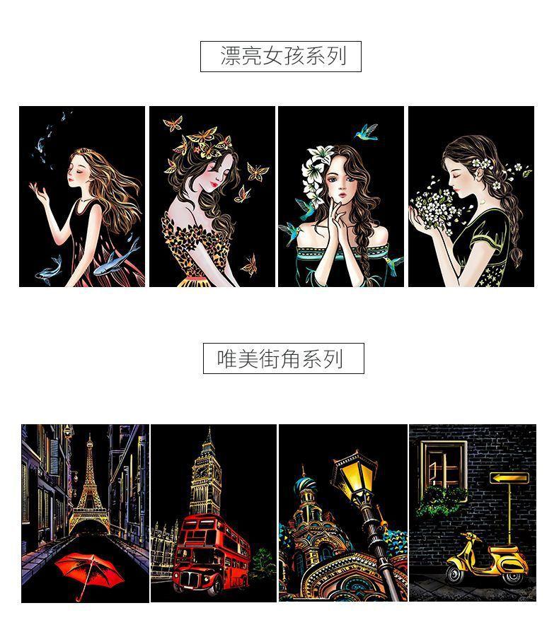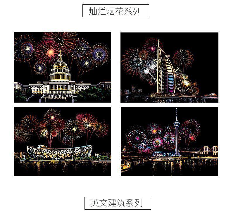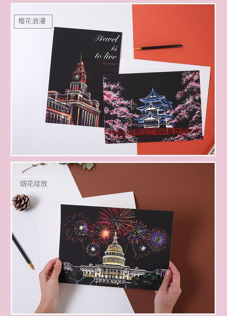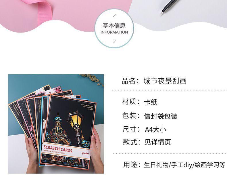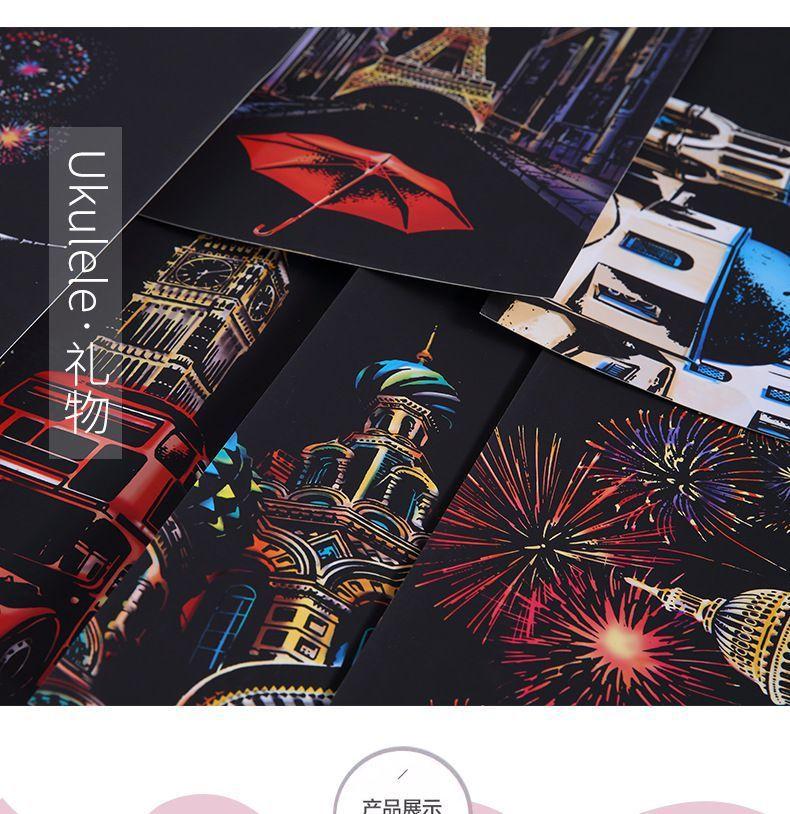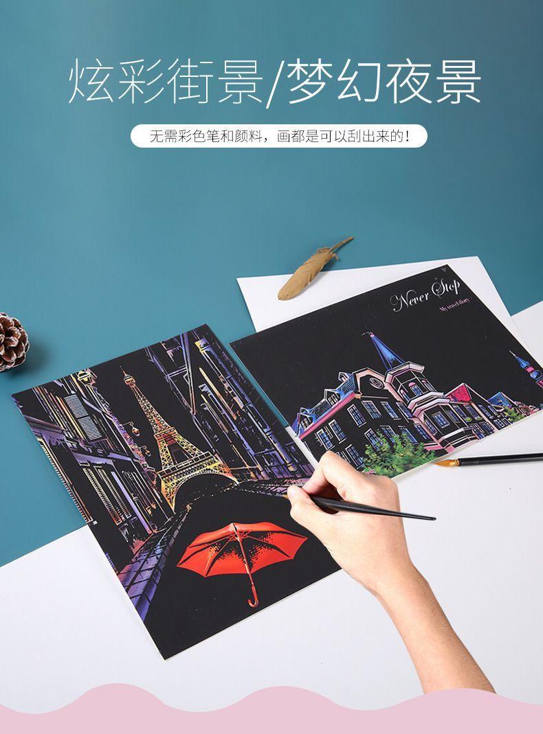 Pintura colorida de cena noturna A4 para arranhar, pintura de cenário de cidade, arte faça você mesmo, atividade artesanal, produção, pintura para arranhar, presente para namorada