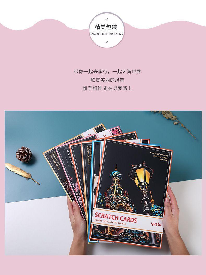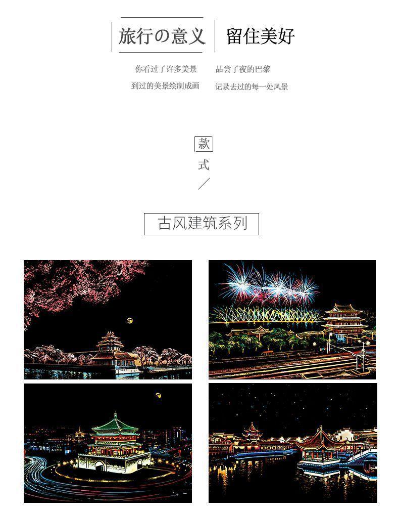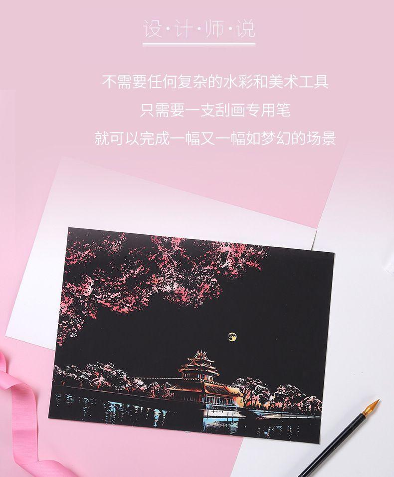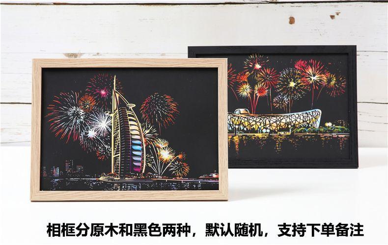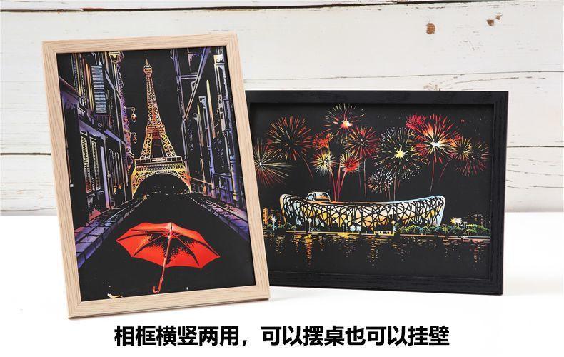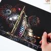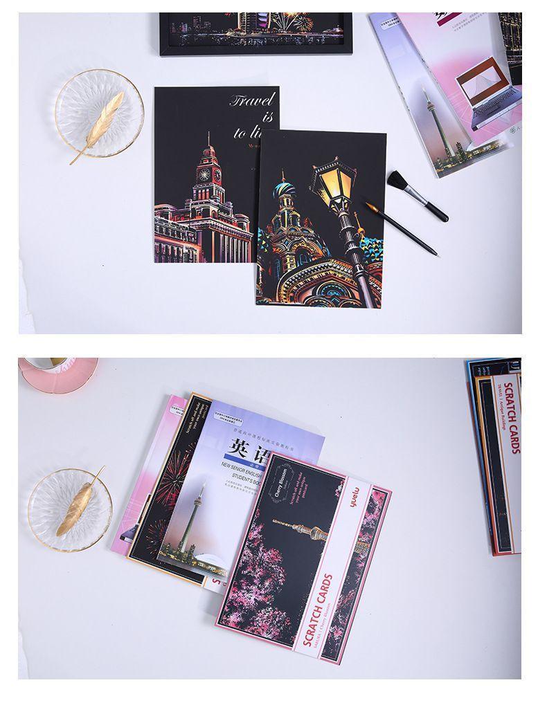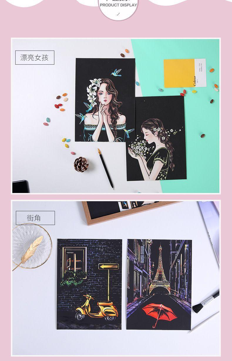 Pintura colorida de cena noturna A4 para arranhar, pintura de cenário de cidade, arte faça você mesmo, atividade artesanal, produção, pintura para arranhar, presente para namorada