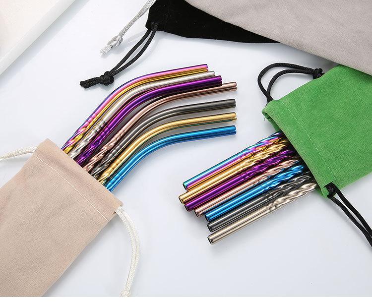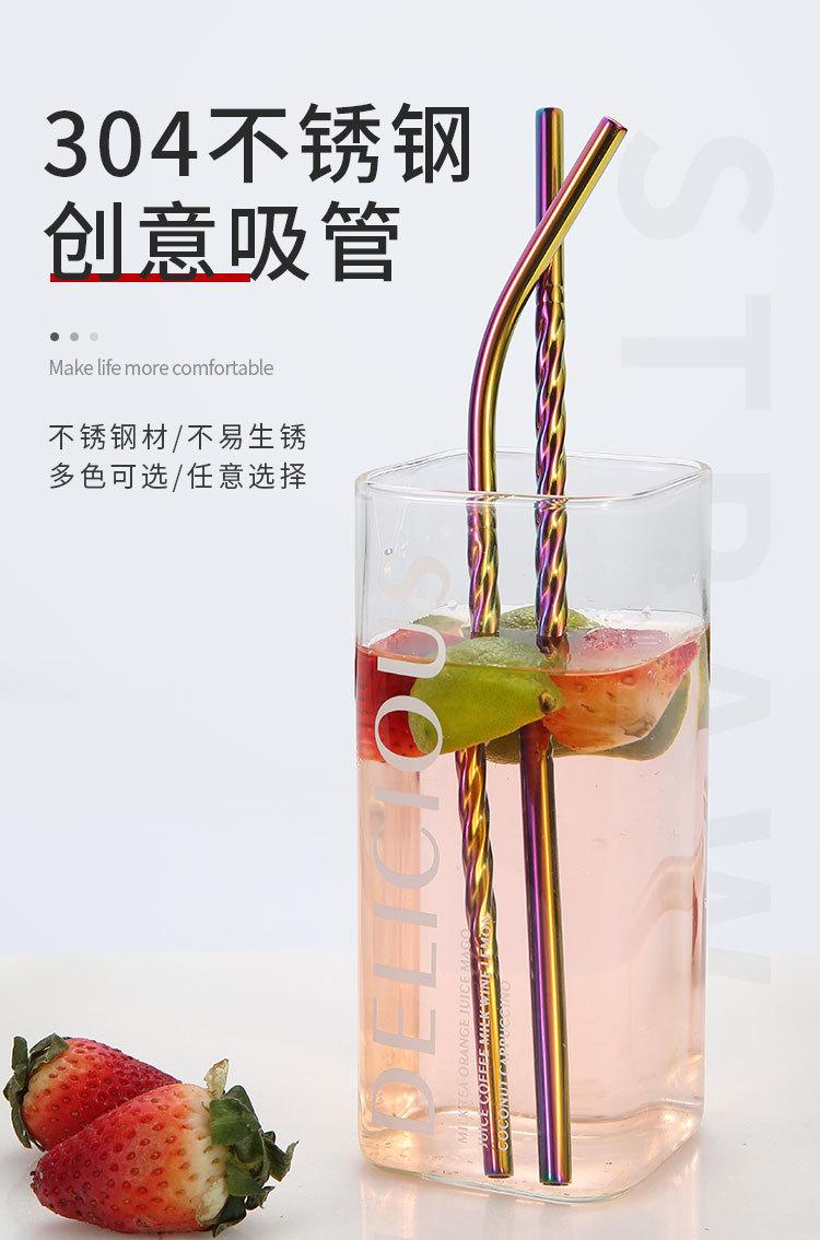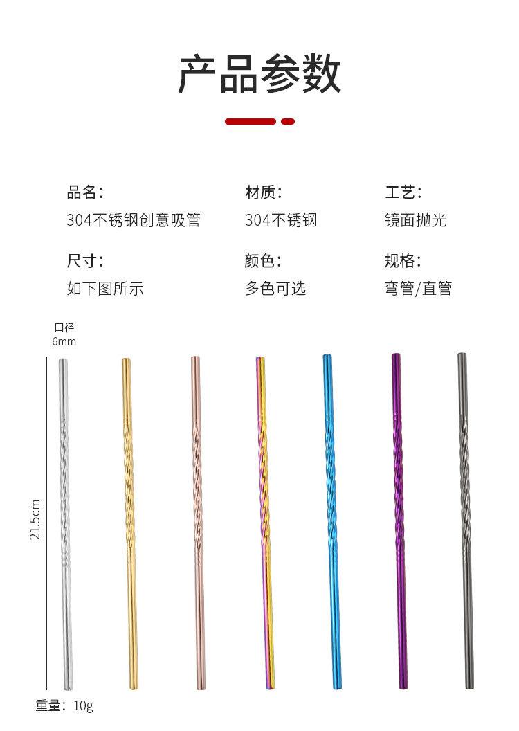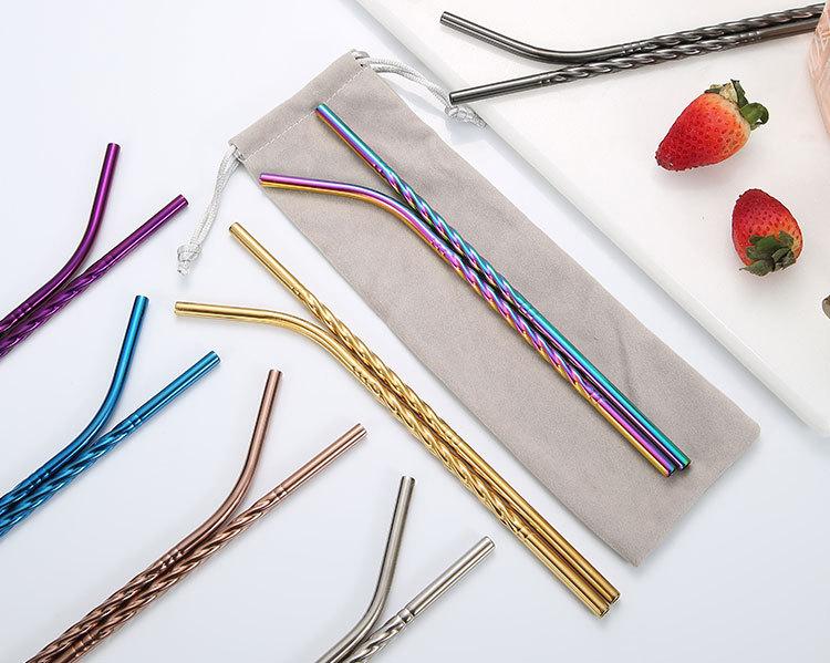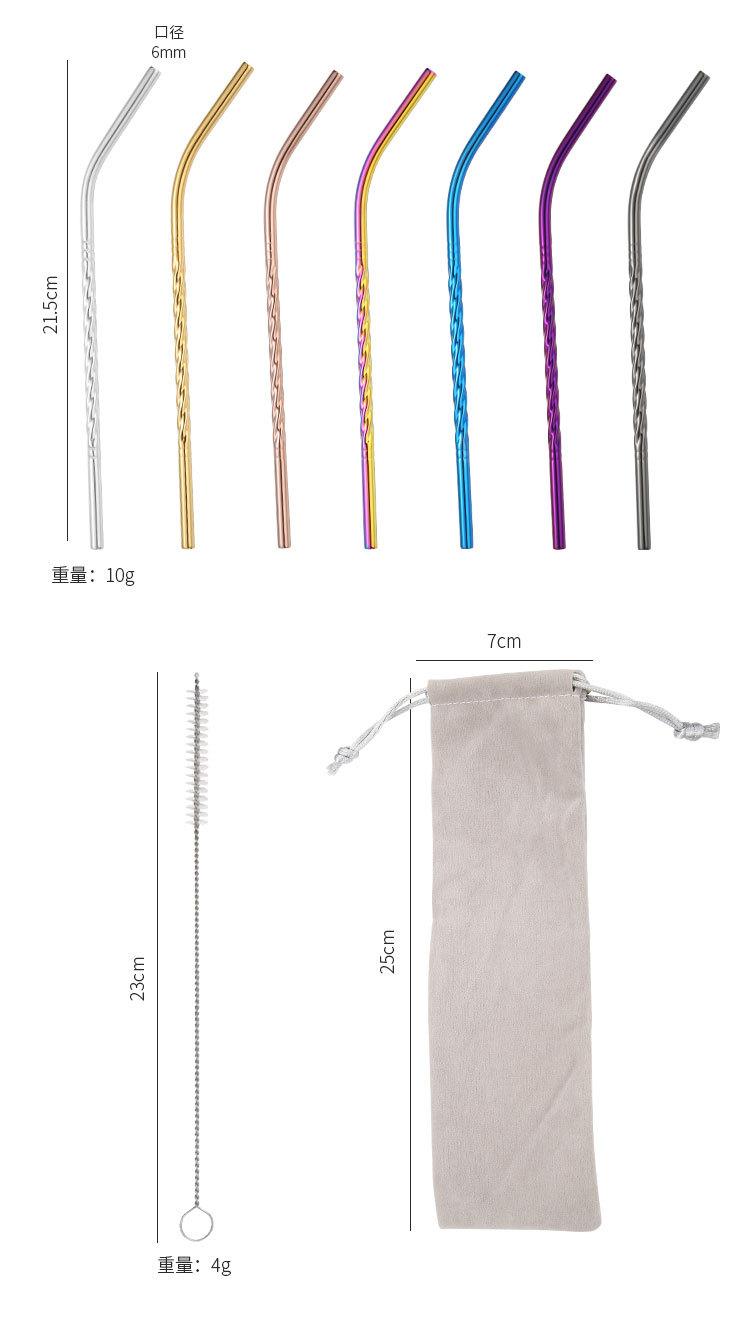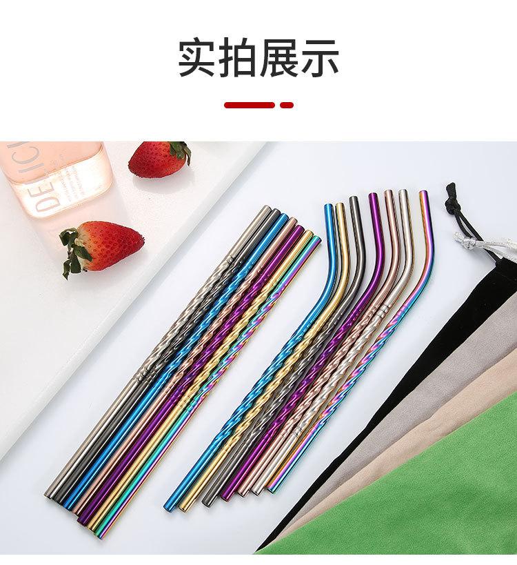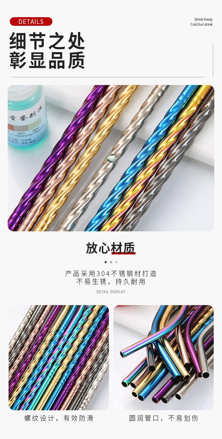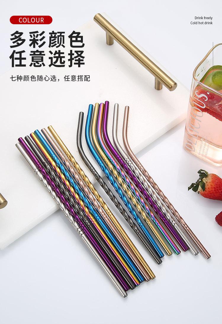 Cross-border 304 aço inoxidável criativo padrão palha ponto simples fácil de limpar palha conjunto de palha espiral fio palha