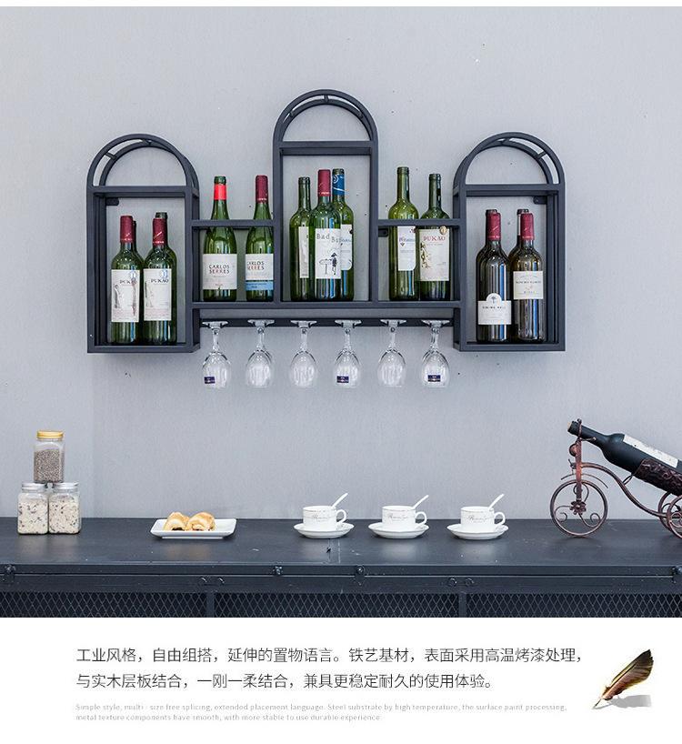 Prateleira de vinho de ferro pastoral pendurada na parede armário de vinho criativo prateleira de vinho de parede de armazenamento doméstico rack restaurante rack de vidro de vinho