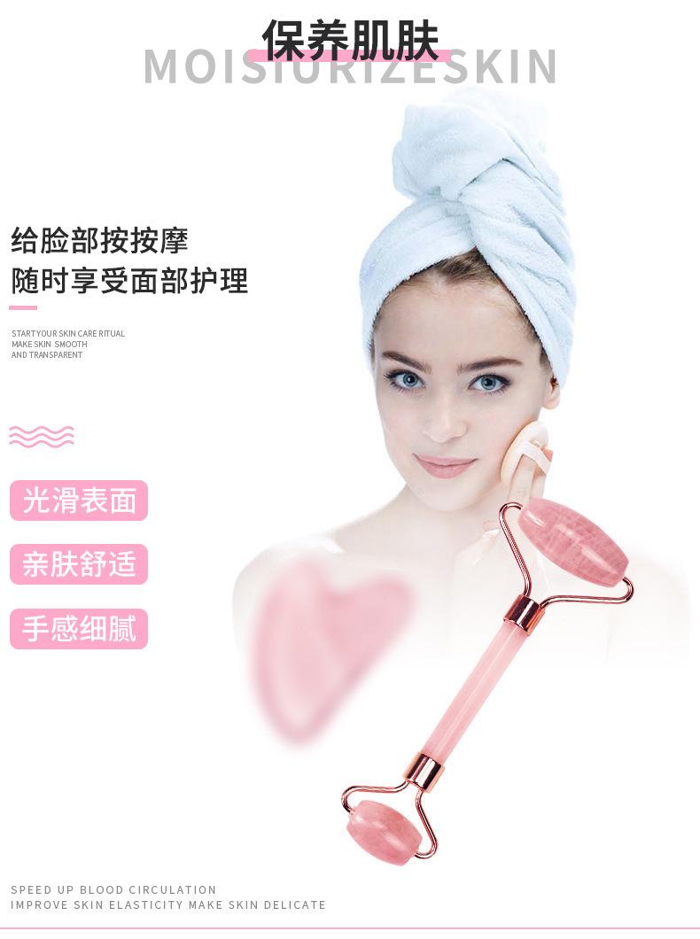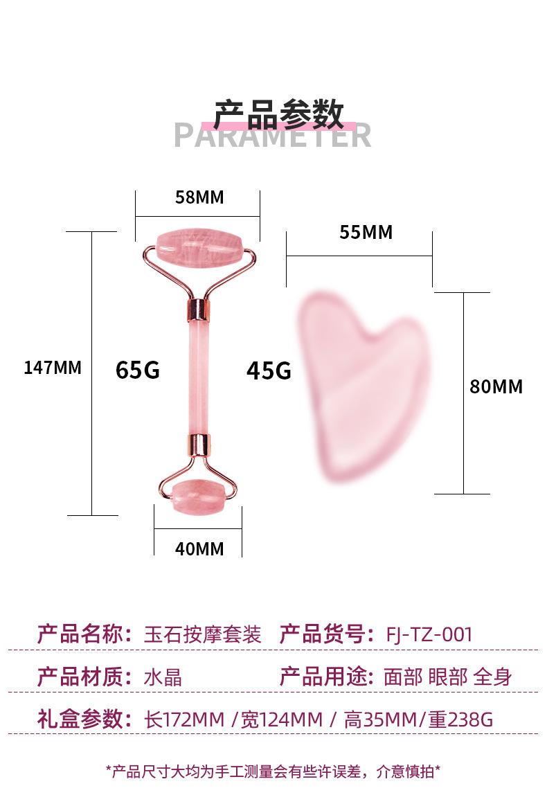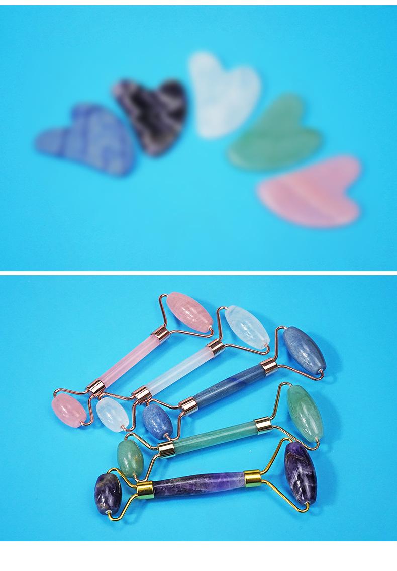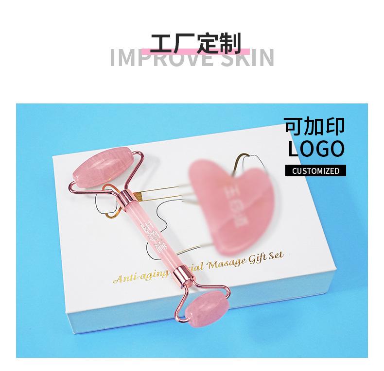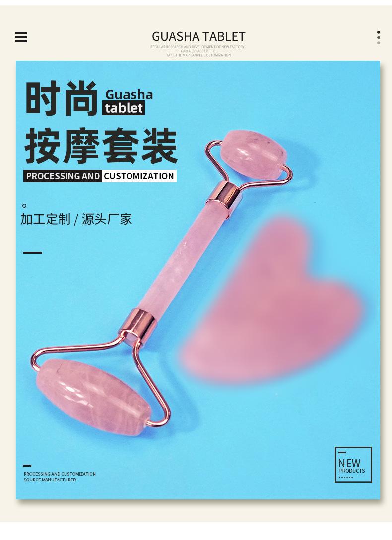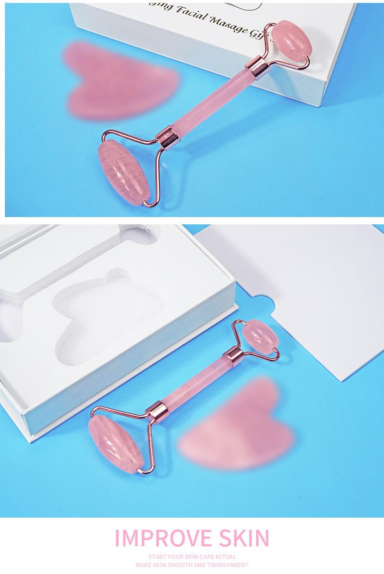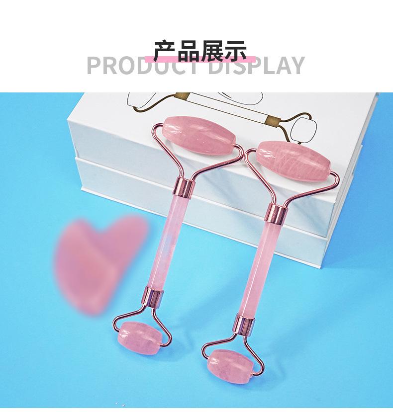Rolo de Jade de Cristal Rosa Natural Recipiente de Beleza Conjunto de Massagem Raspagem Corpo Inteiro Dispositivo de Raspagem para Costas para Massagem Facial