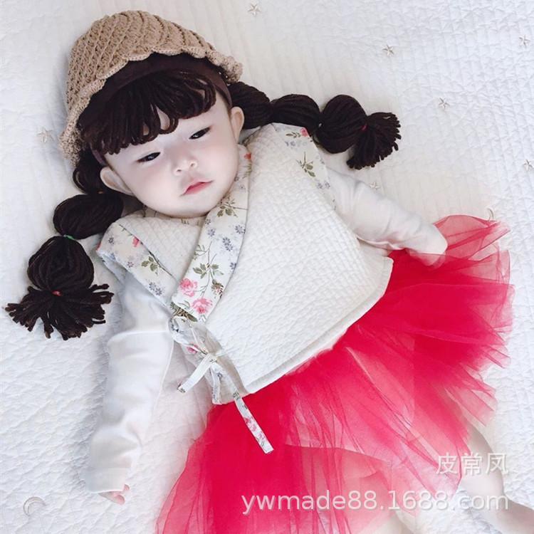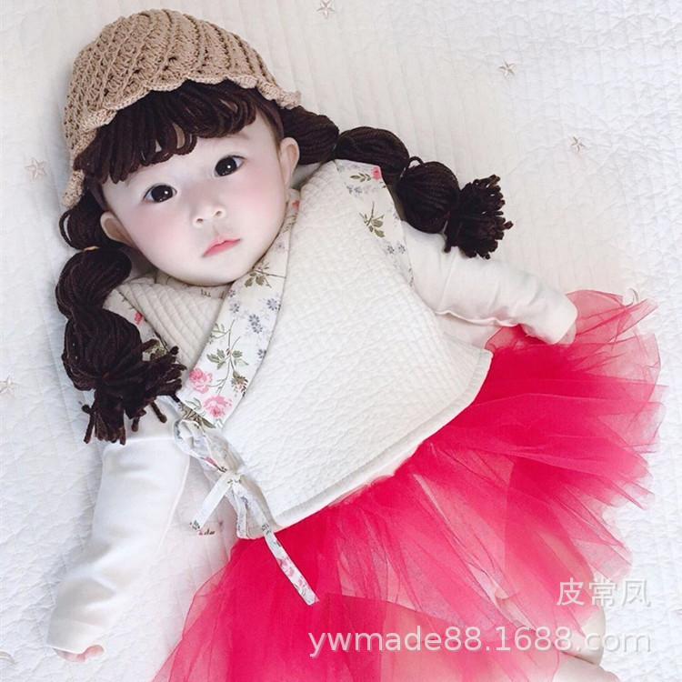 Ins estilo coreano chapéu das crianças outono e inverno bonito meninos e meninas bangs trança, chapéu de trança handmade ear protection chapéu de lã em estoque
