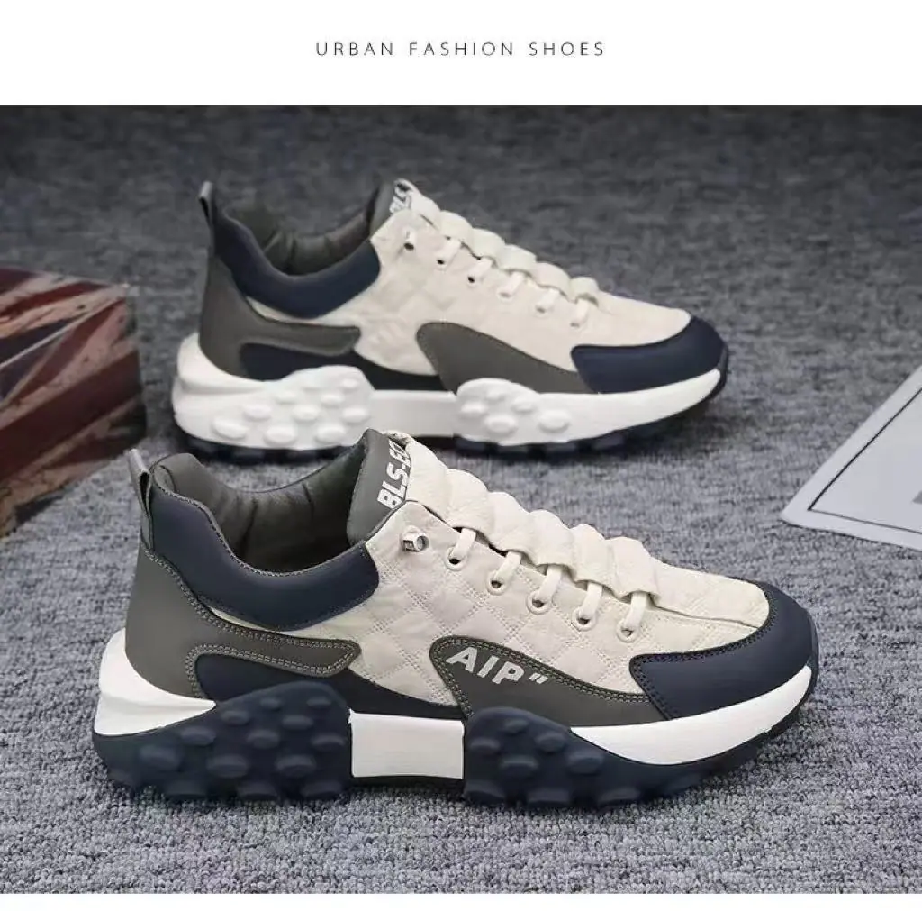 Sapatos masculinos transfronteiriços 2025 nova versão coreana de tênis de corrida de cano baixo tendência antiderrapante de sola grossa tênis de pai respiráveis