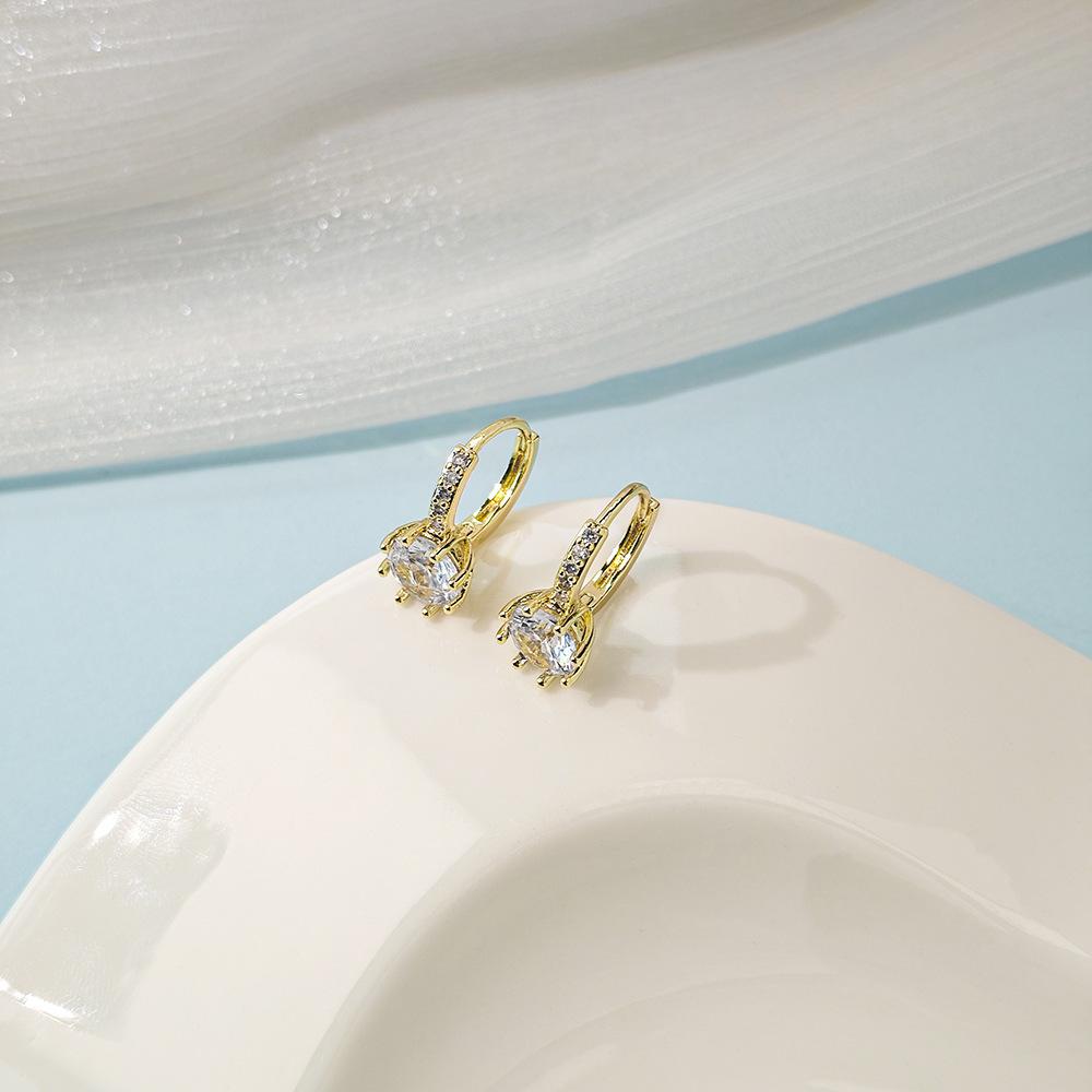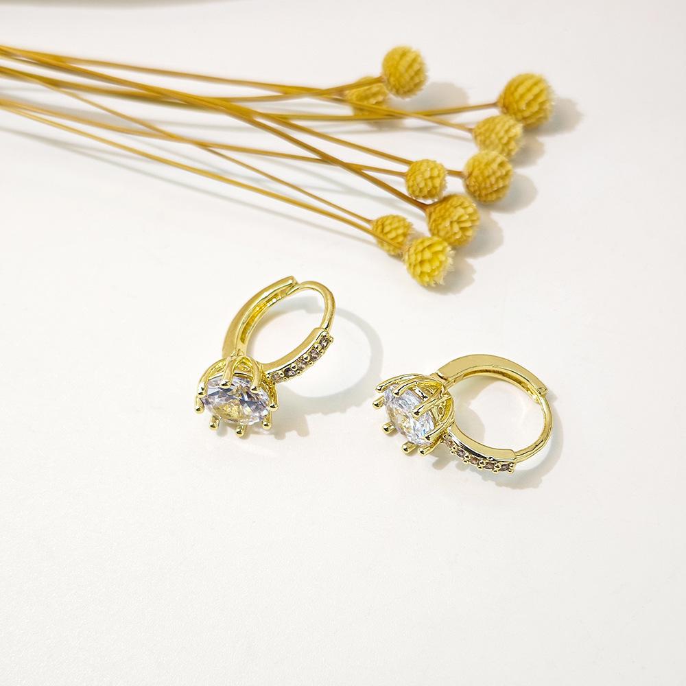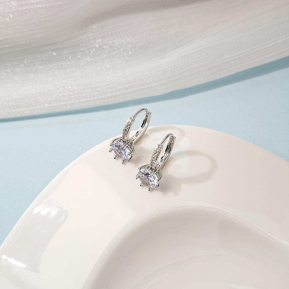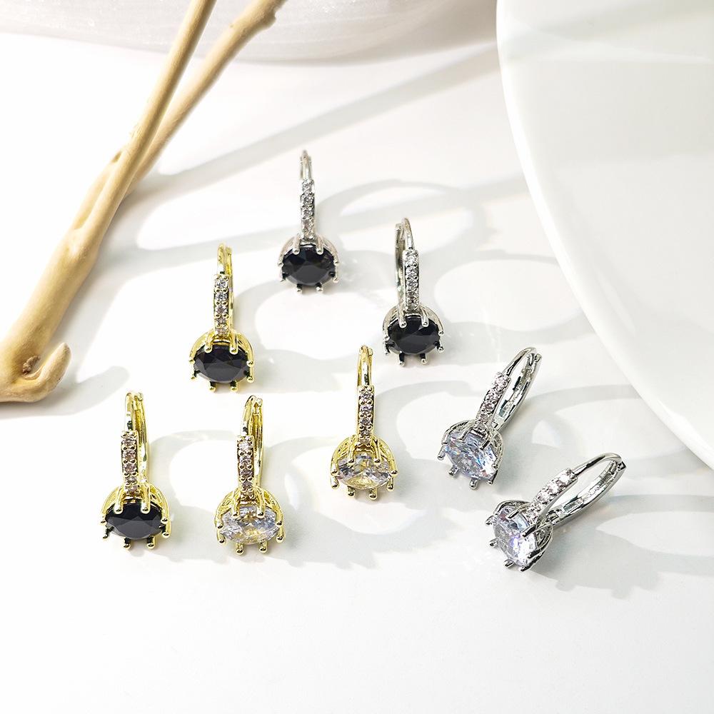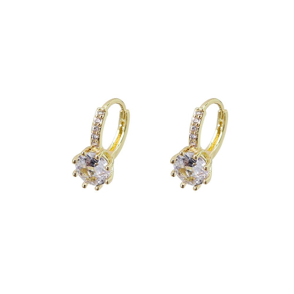 Compre Brincos de diamante elegantes de moda transfronteiriça europeia e americana, estilo coreano, brincos de zircônia redondos geométricos simples, brincos de alta qualidade no atacado no Joom.pro