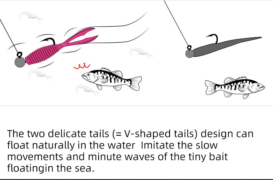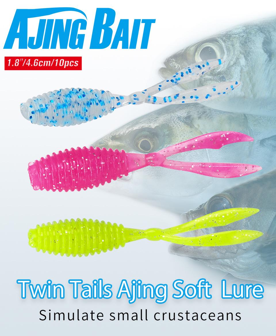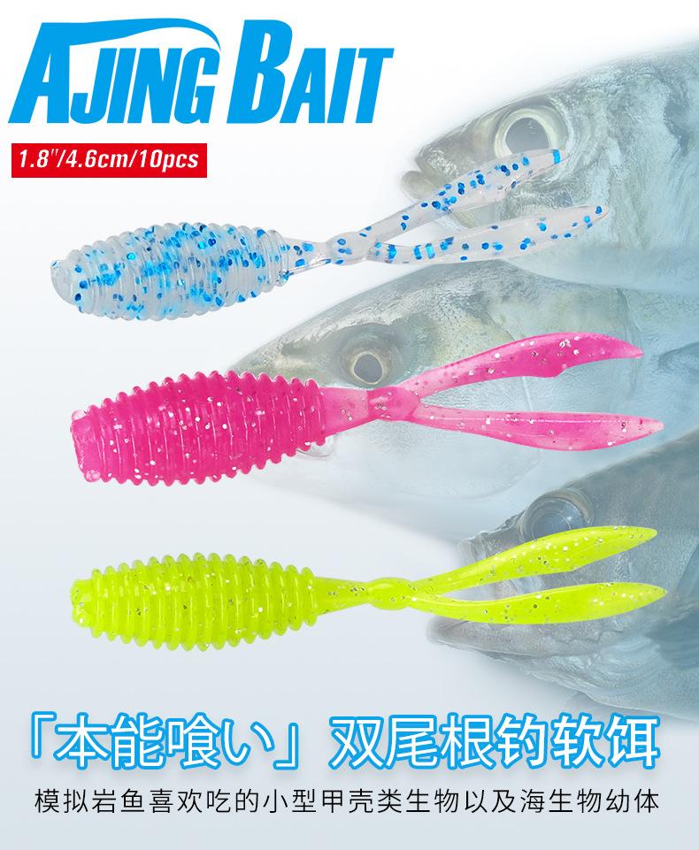 Compre Luya Soft Bait Isca de raiz de cauda dupla 4.6cm0.5g gancho de chumbo invertido Isca de peixe mandarim 10 UV pequeno luminoso no atacado no Joom.pro