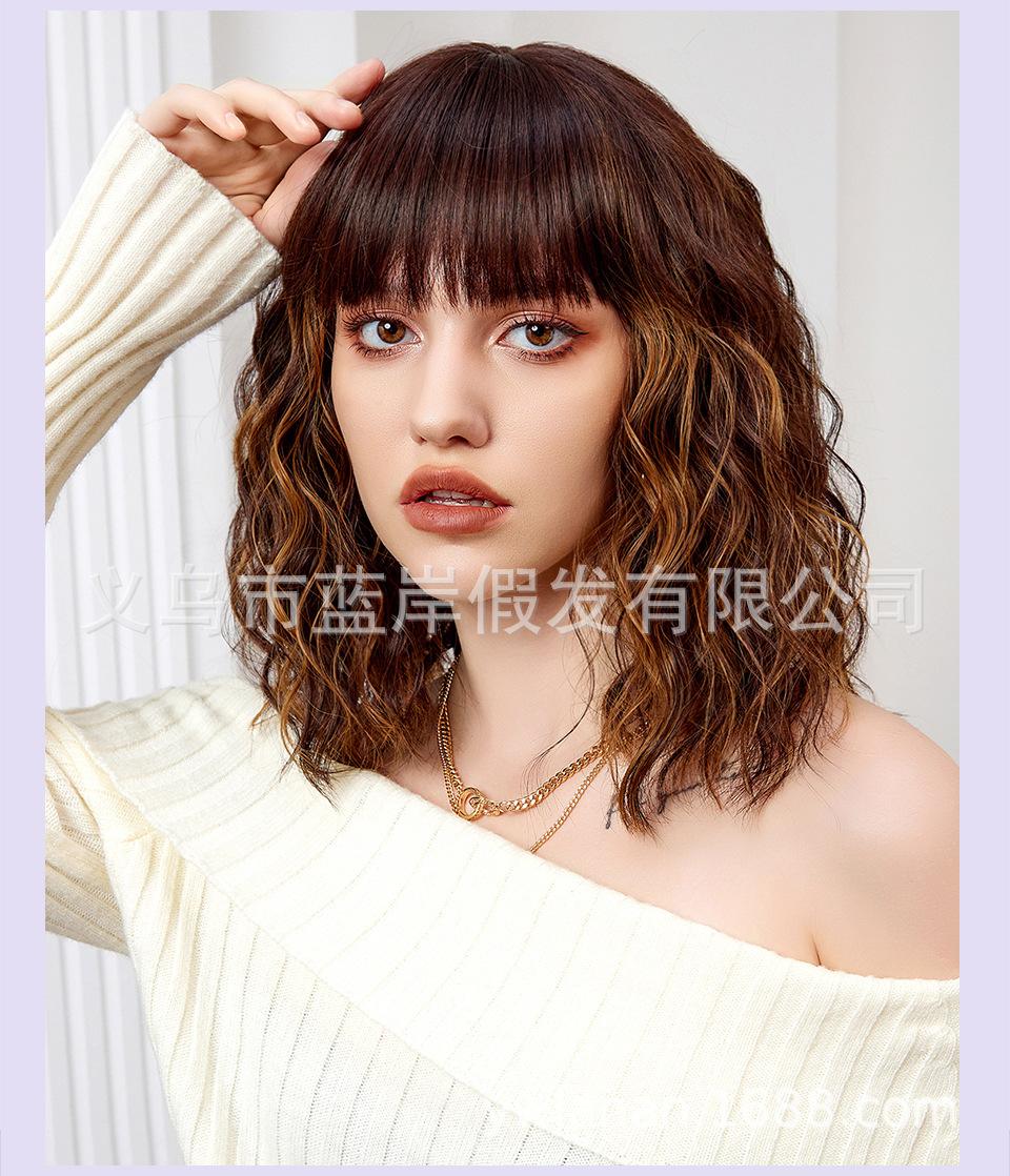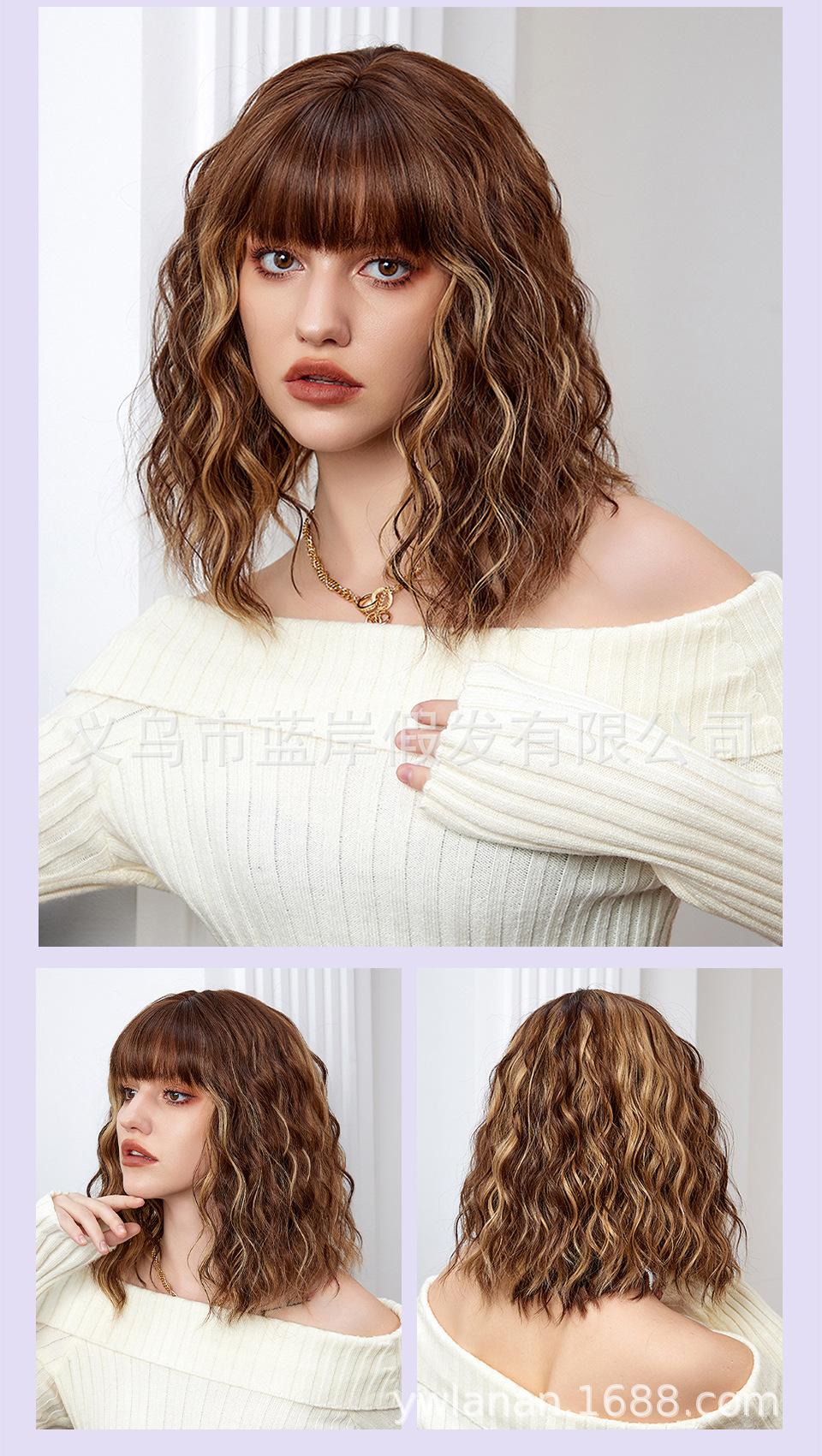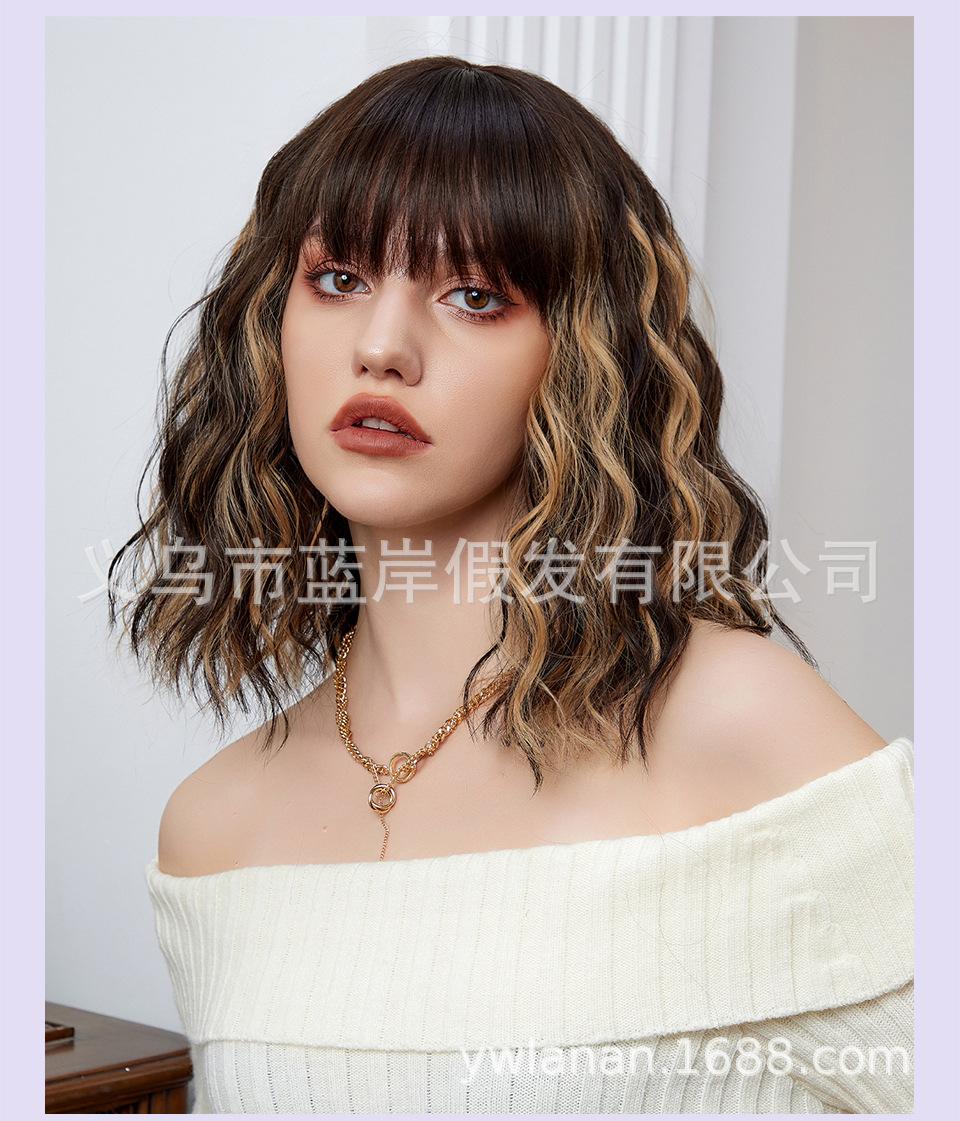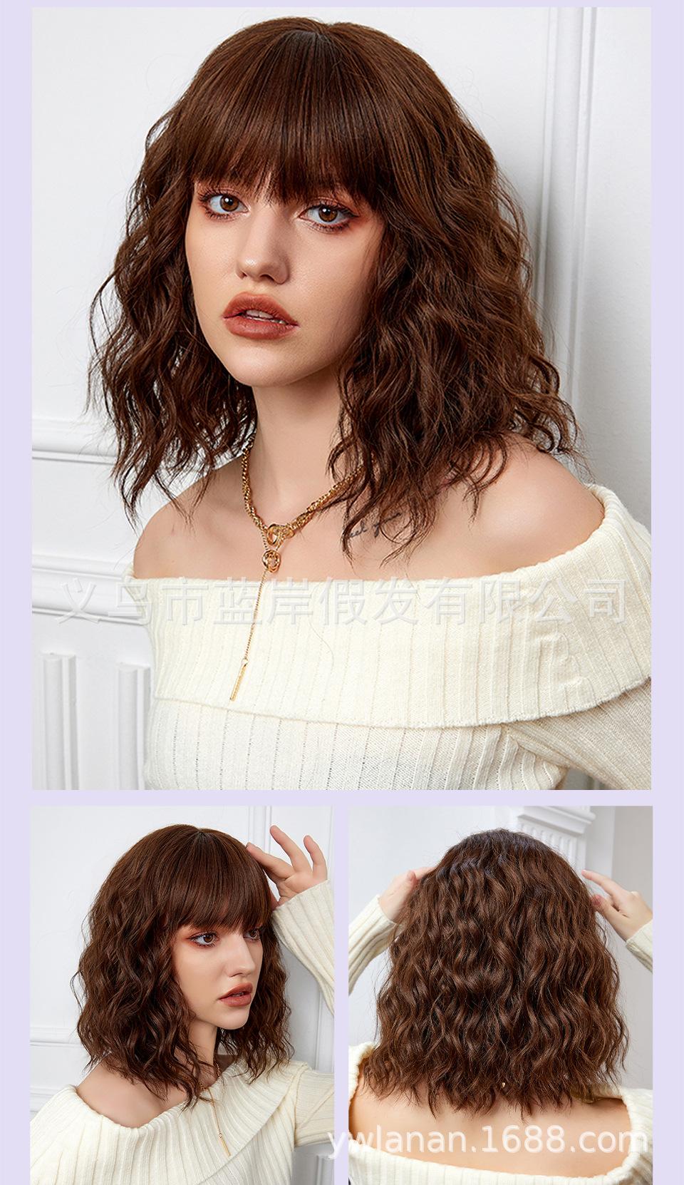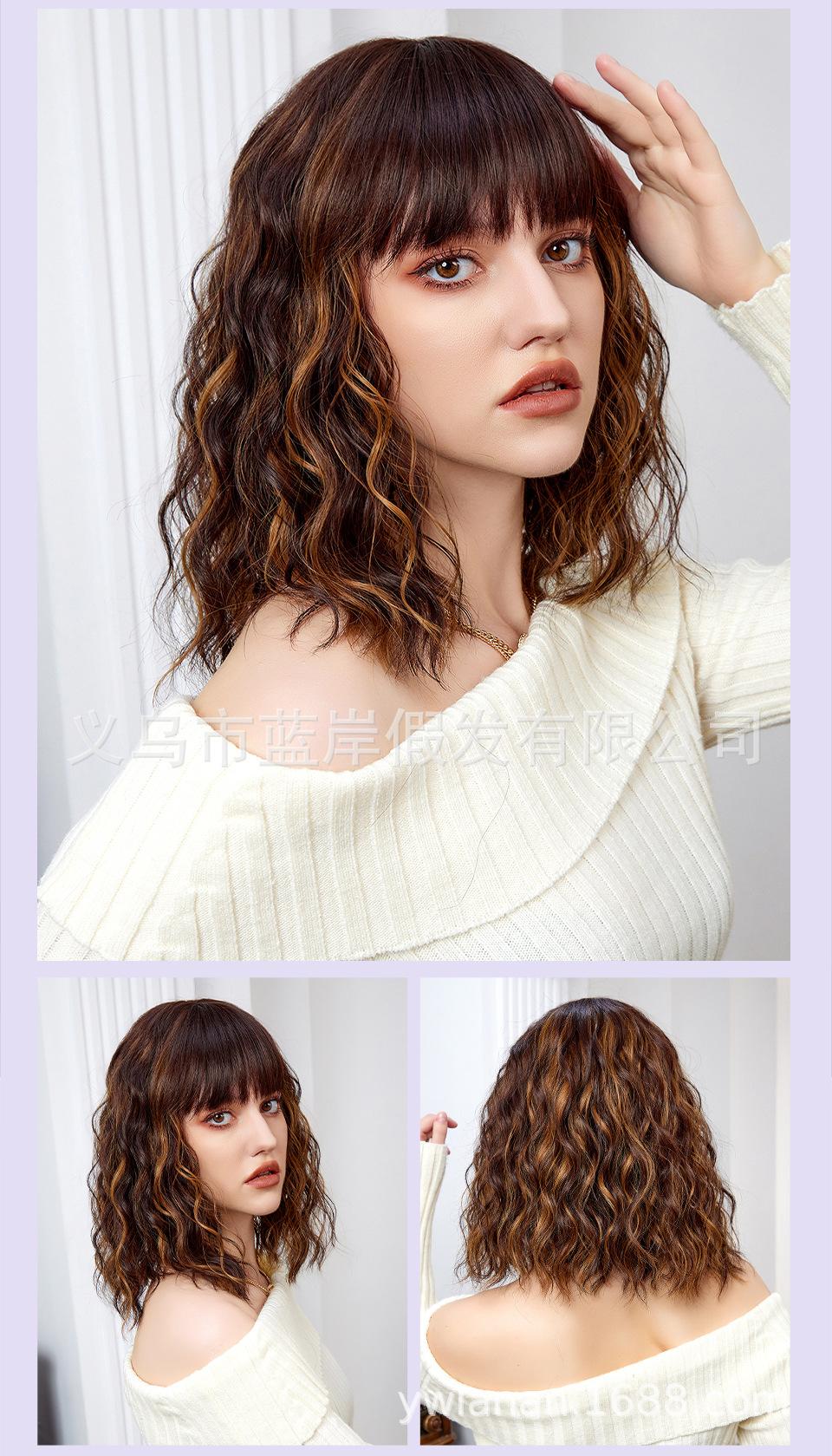 Peruca feminina de cabelo curto transfronteiriça Shein, europeia e americana, simulação de lã natural, cabelo cacheado pequeno, fábrica em estoque