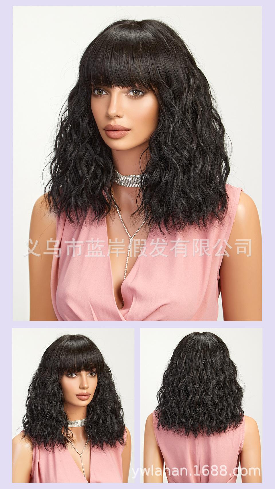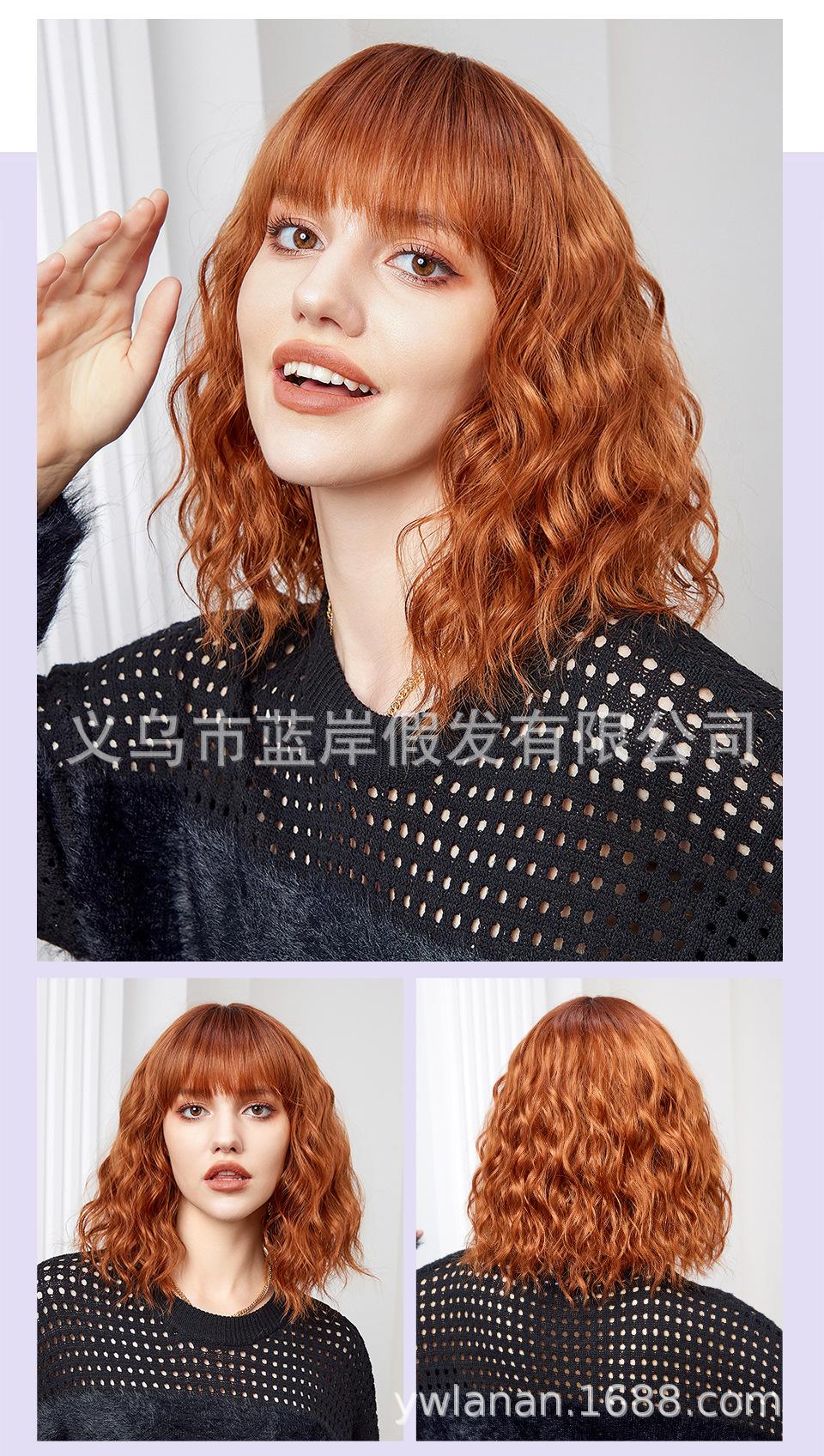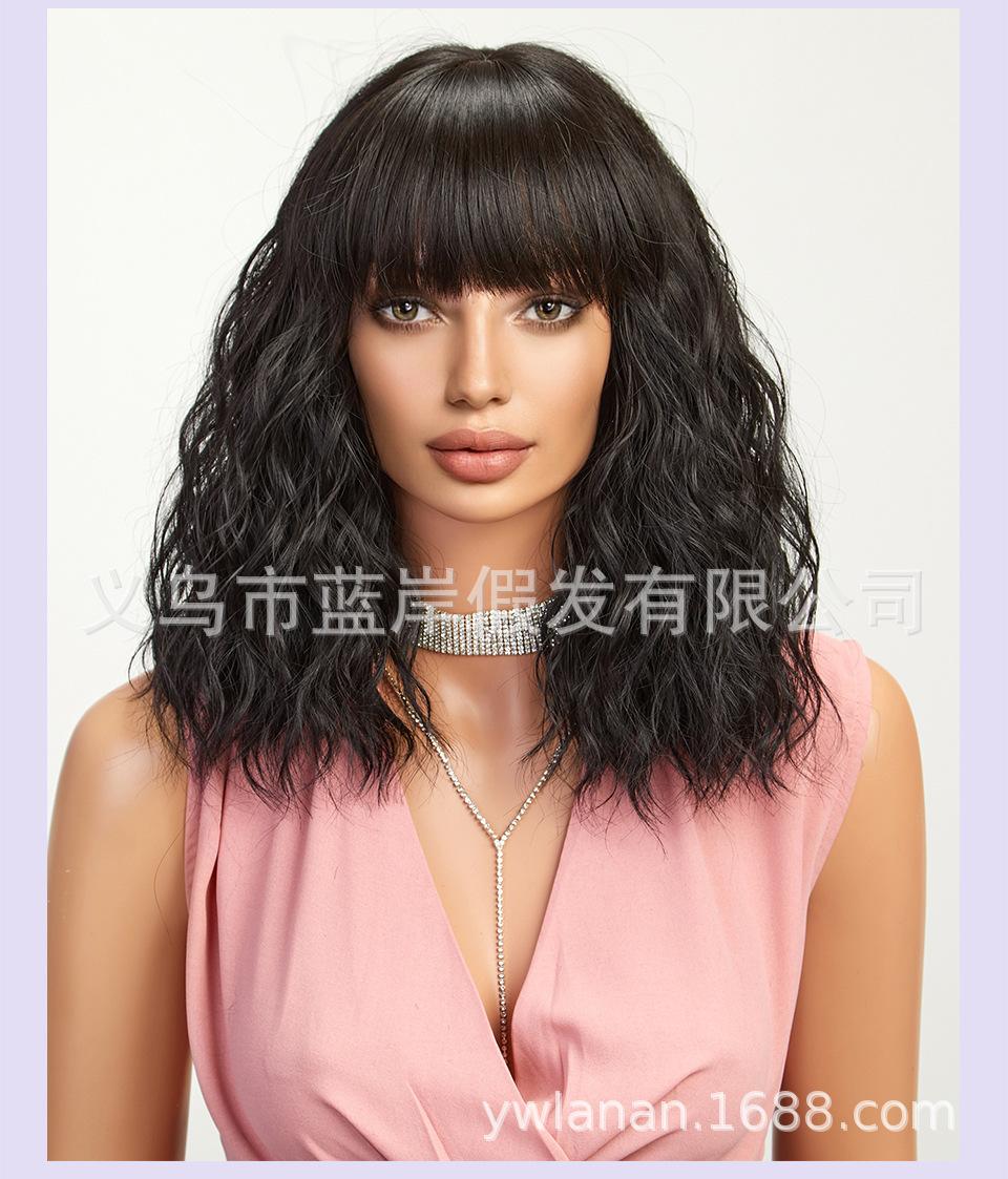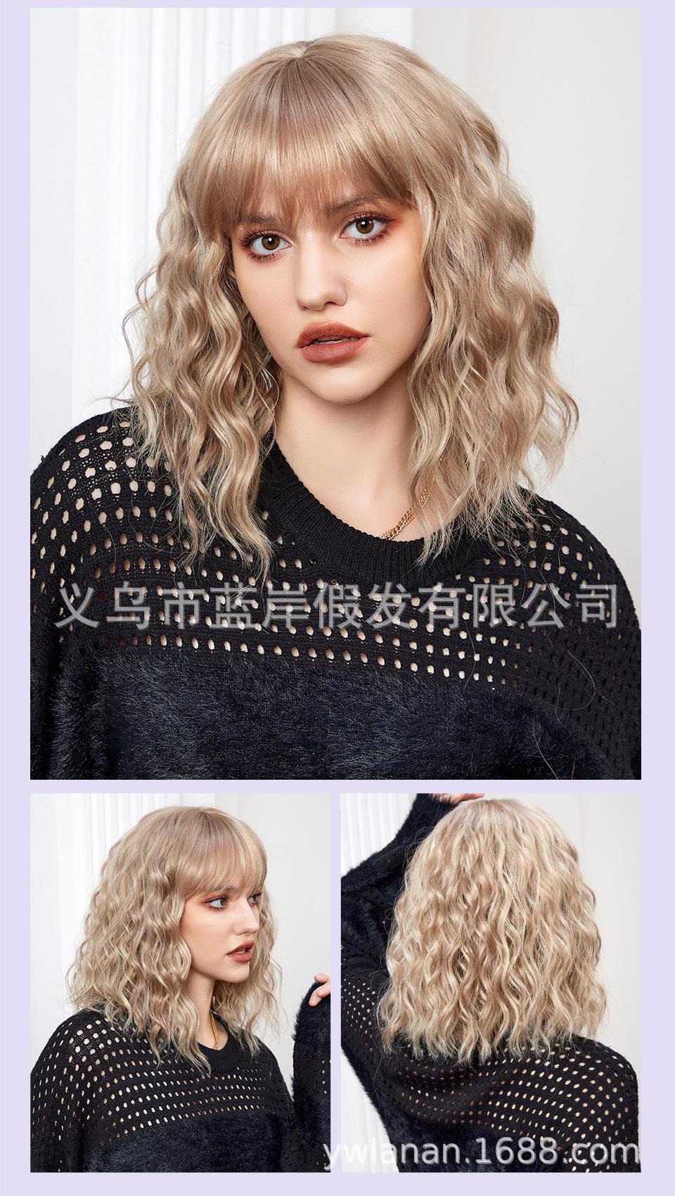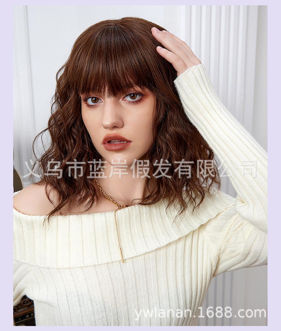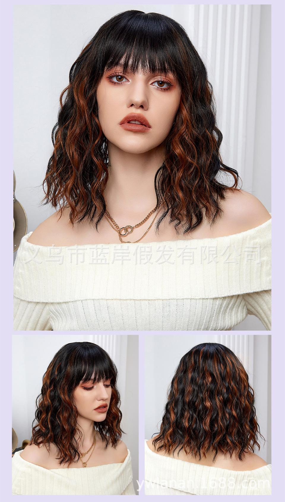 Peruca feminina de cabelo curto transfronteiriça Shein, europeia e americana, simulação de lã natural, cabelo cacheado pequeno, fábrica em estoque