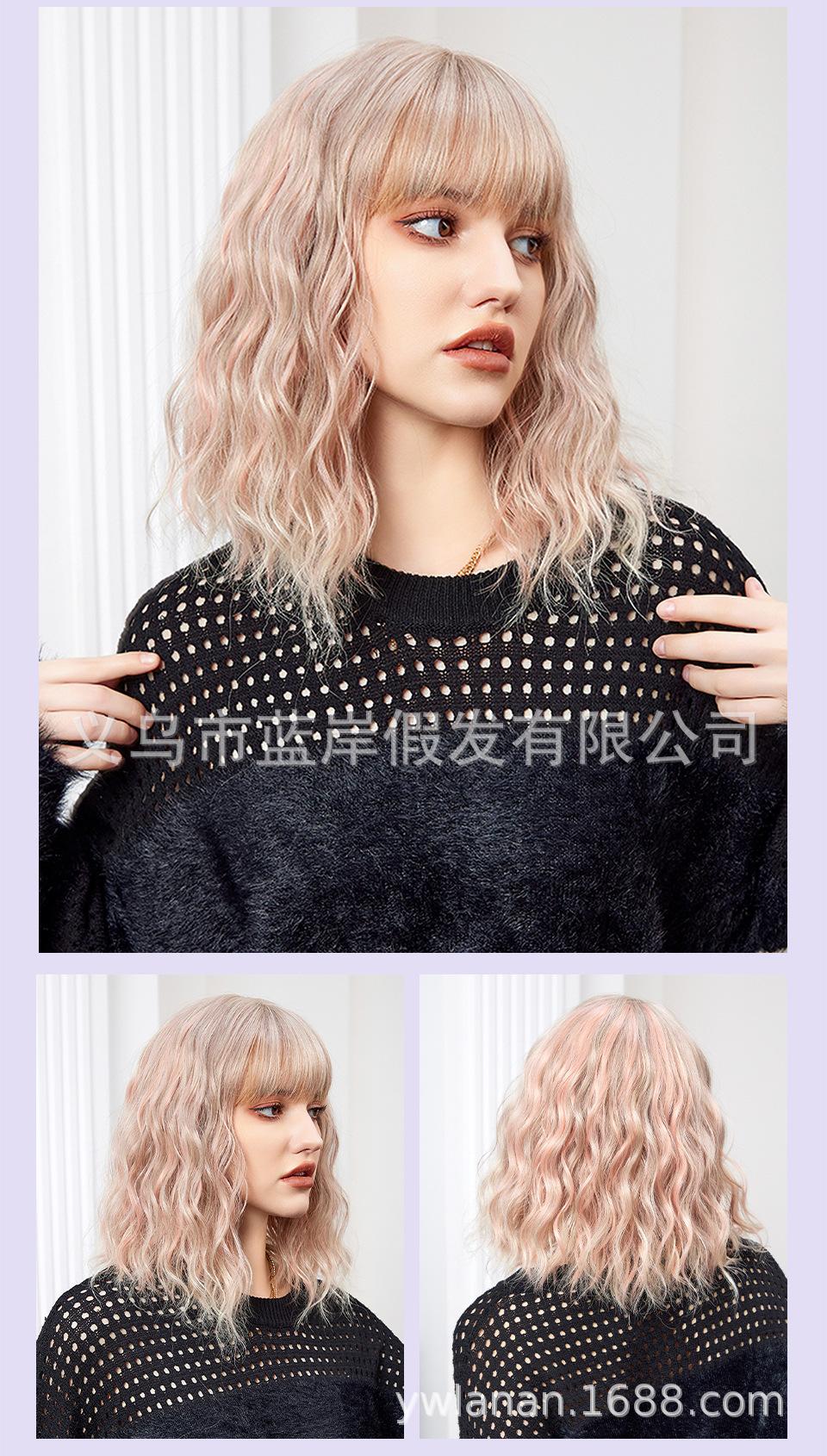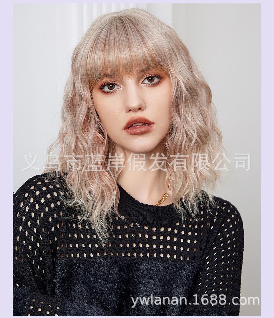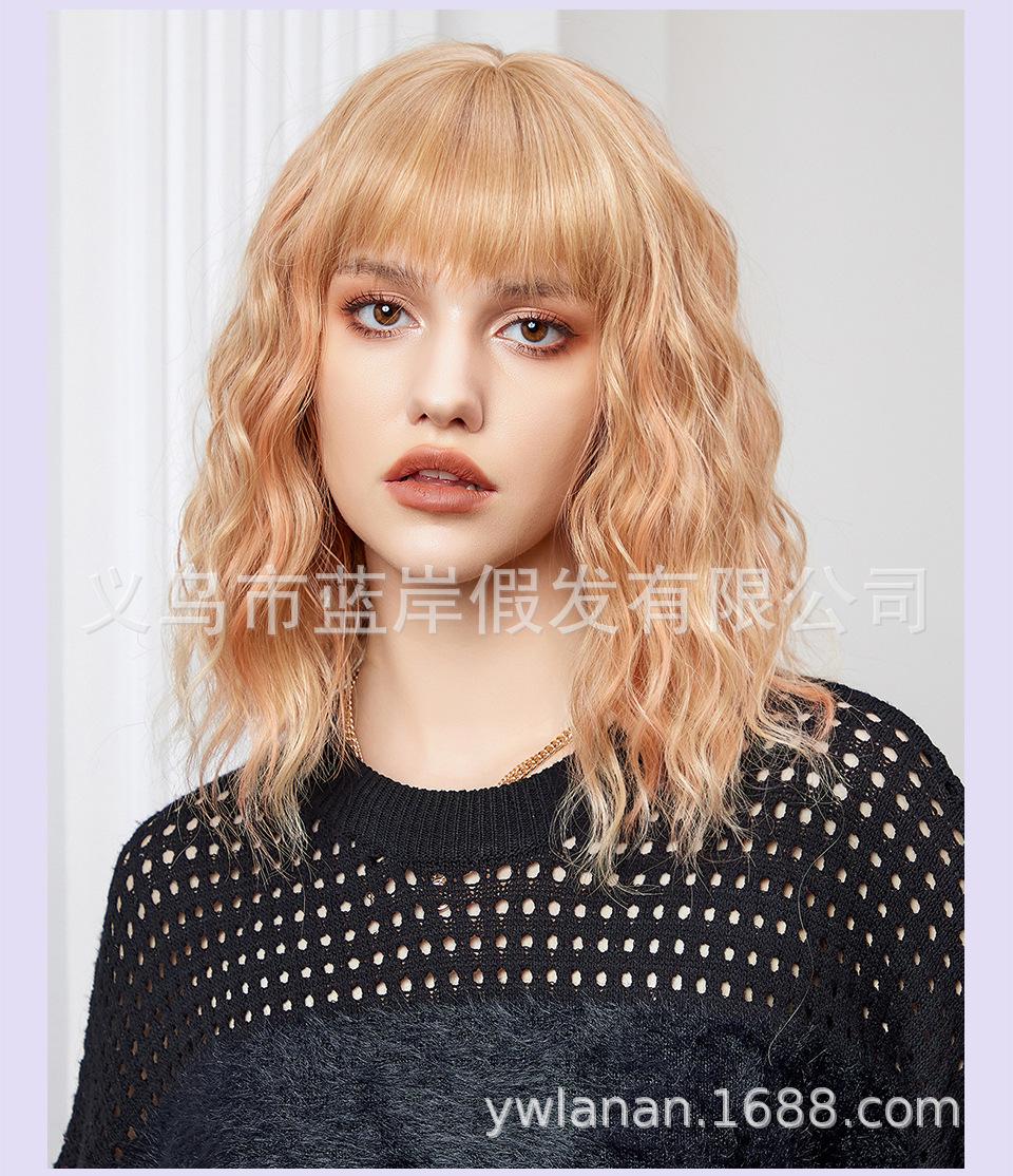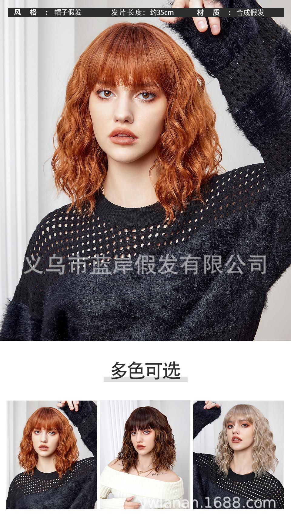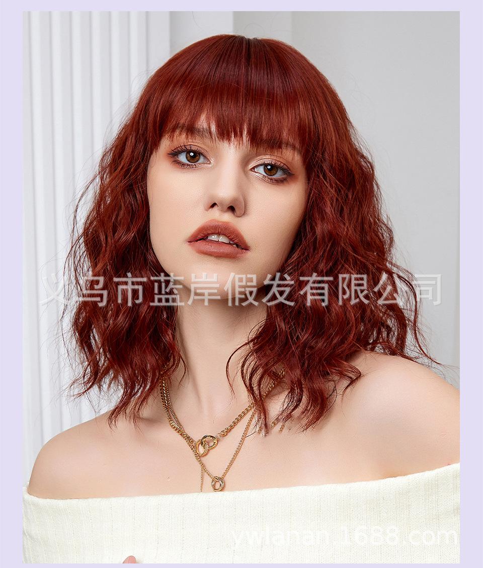 Peruca feminina de cabelo curto transfronteiriça Shein, europeia e americana, simulação de lã natural, cabelo cacheado pequeno, fábrica em estoque
