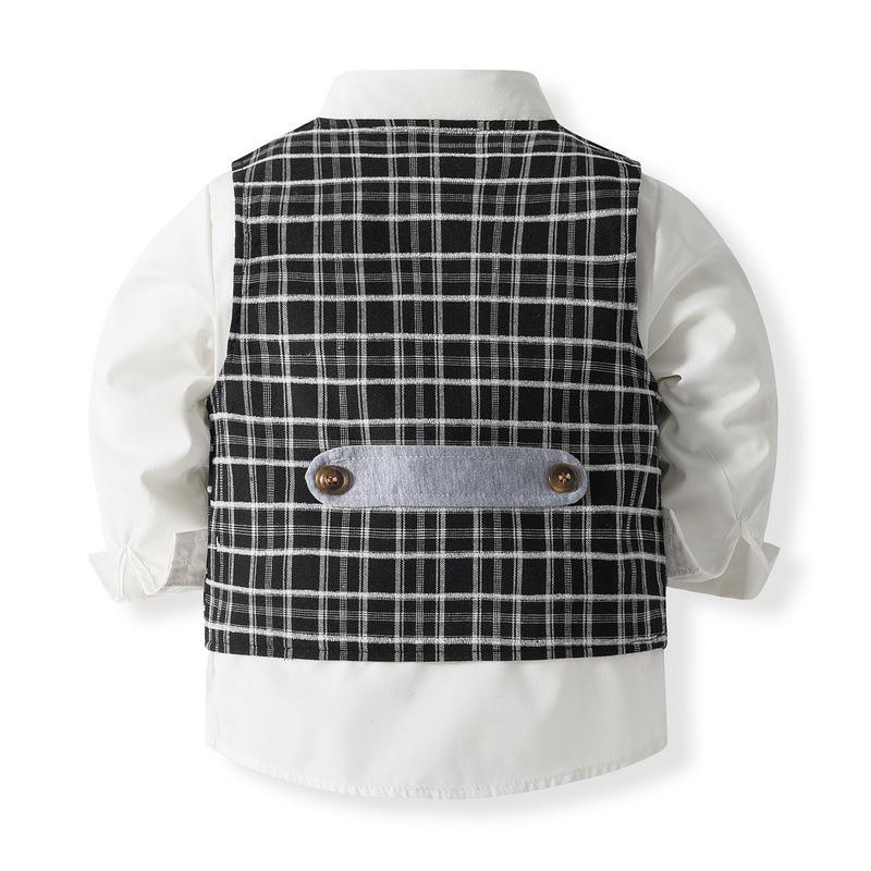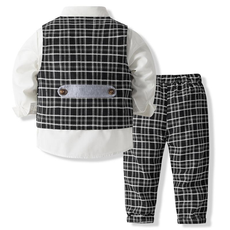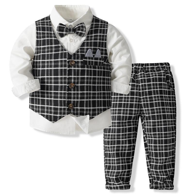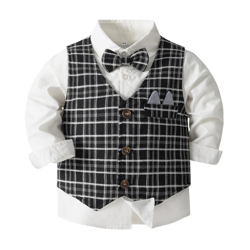 Meninos 'Plaid Gentleman's Small Suit Primavera e Outono Novo Estilo Europeu e Americano Crianças de manga comprida Vestido de Desempenho de Casamento Terno Clássico
