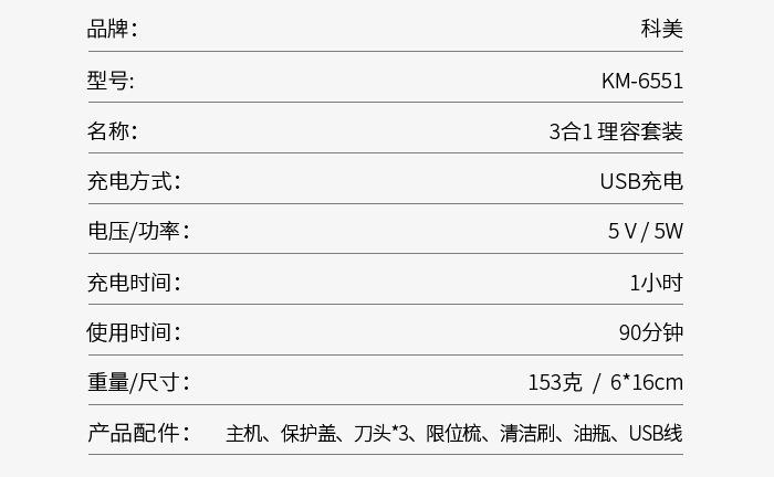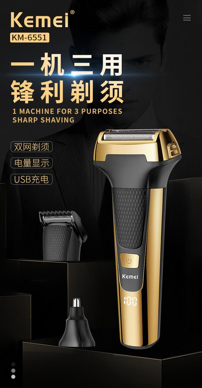 Kemei Barbeador Elétrico Recíproco Multifuncional Três-Em-Um Aparador de Pelos do Nariz e Conjunto de Ferramentas de Cabeleireiro Km-6551