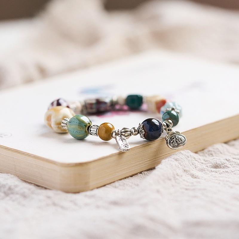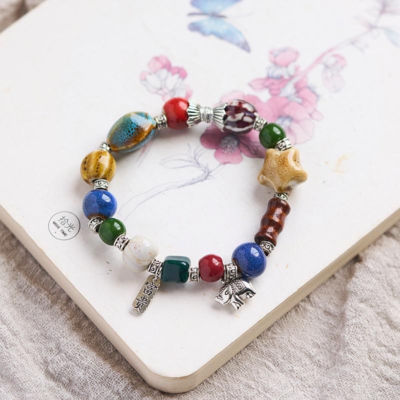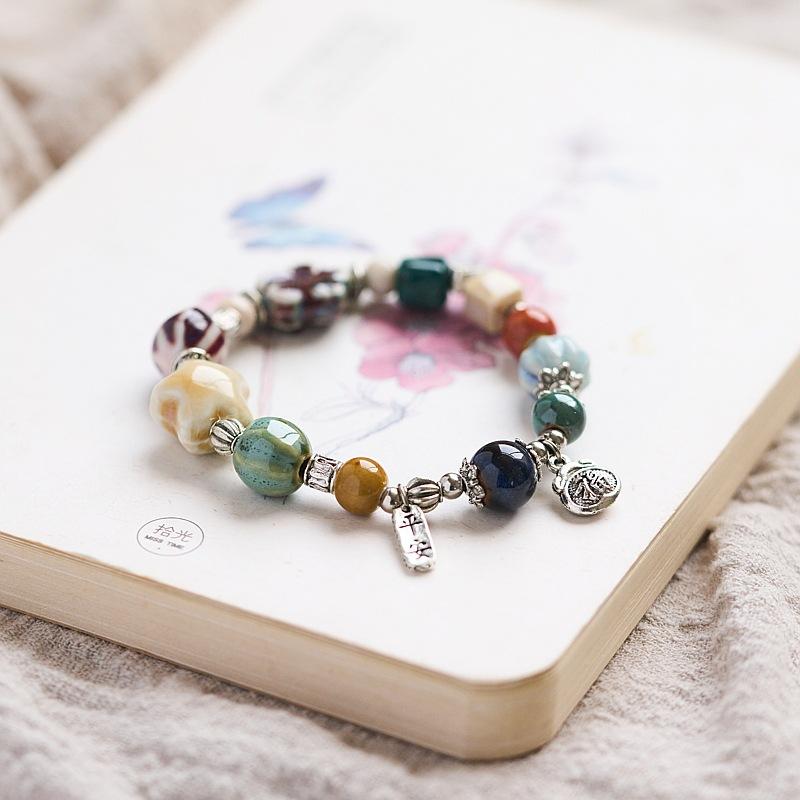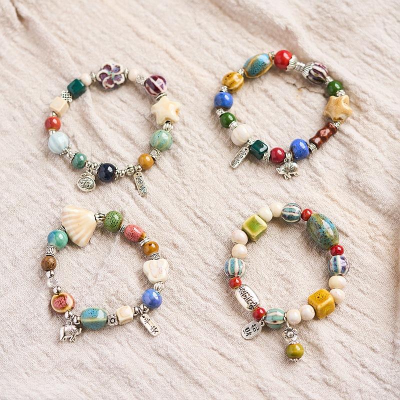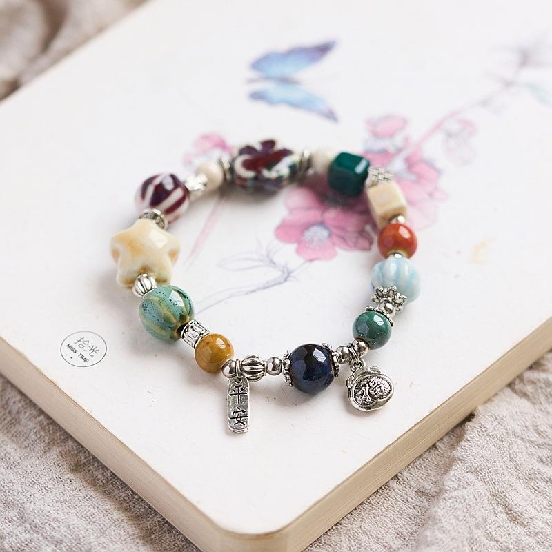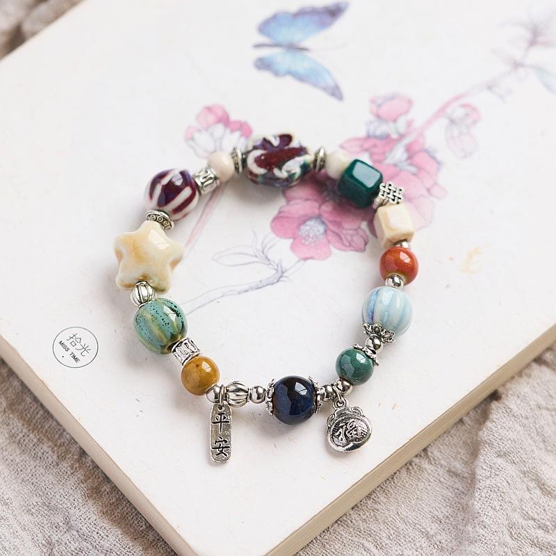 Pulseira de cerâmica de Jingdezhen Estilo Nacional presente tecido à mão um conjunto de porcelana menina fresca combina com tudo novo estilo chinês