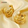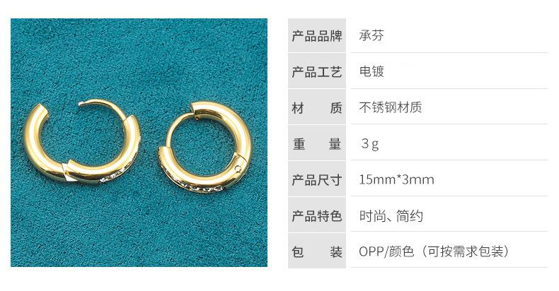 Brincos de diamante de ouro 18K europeus e americanos, brincos de personalidade feminina, nicho de aço inoxidável, círculo geométrico, brincos de aço de titânio