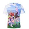 Pretty Derby Verão Casual Estampa Digital 3D Solta Gola Redonda Manga Curta Camiseta Casual Versátil