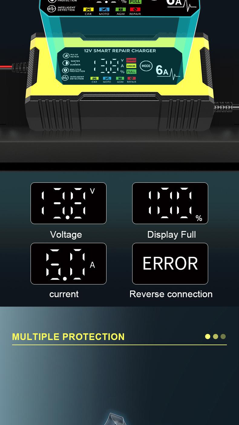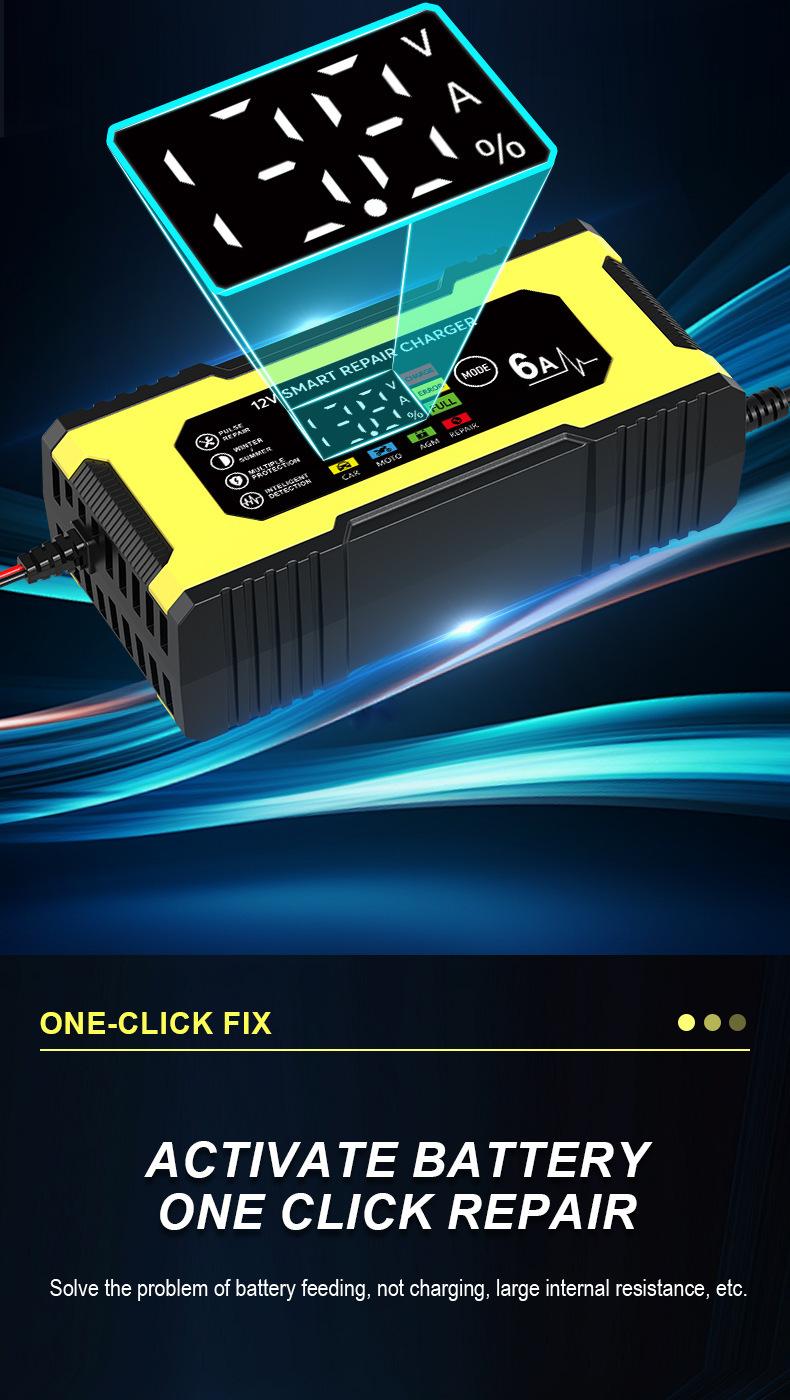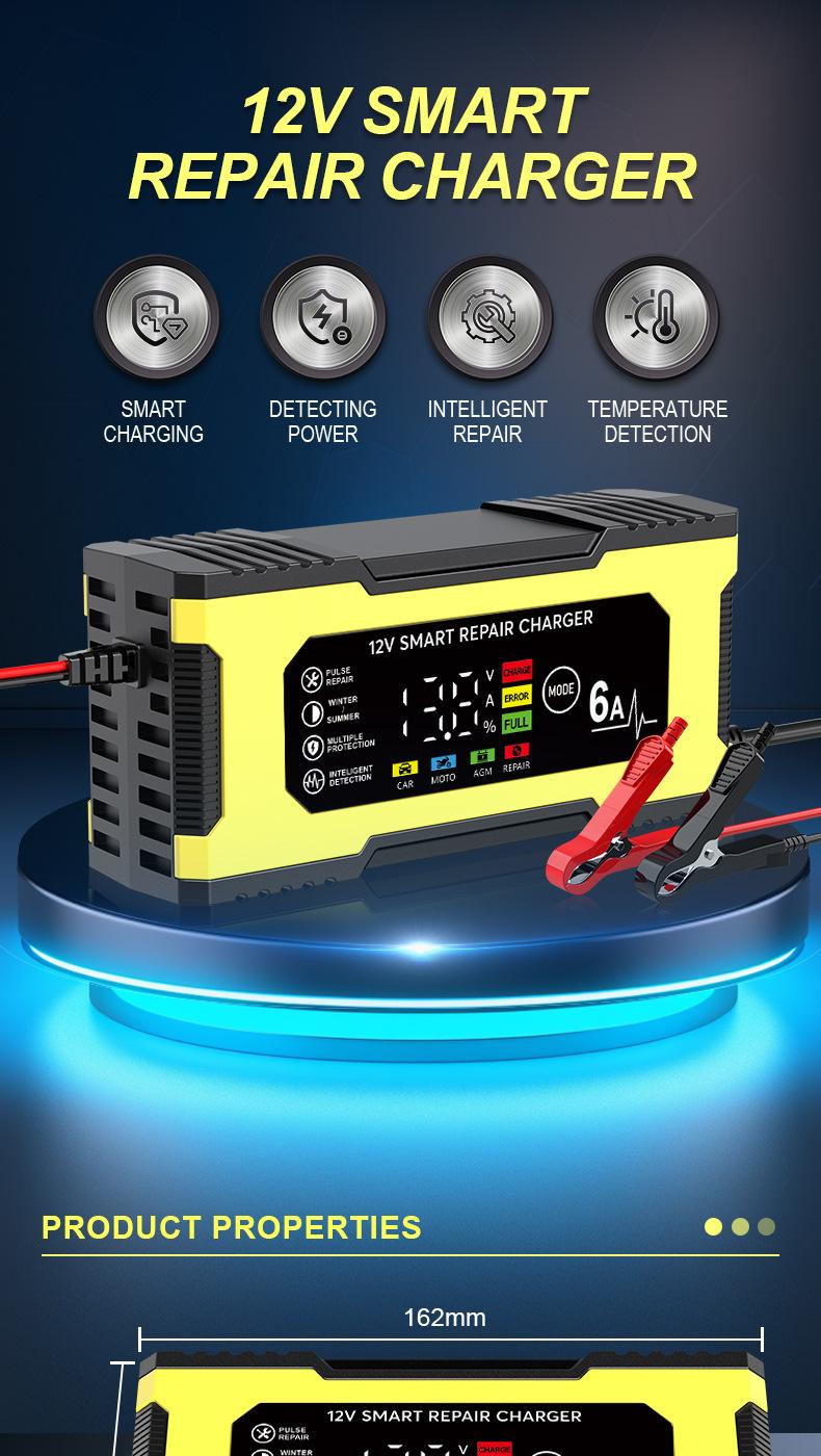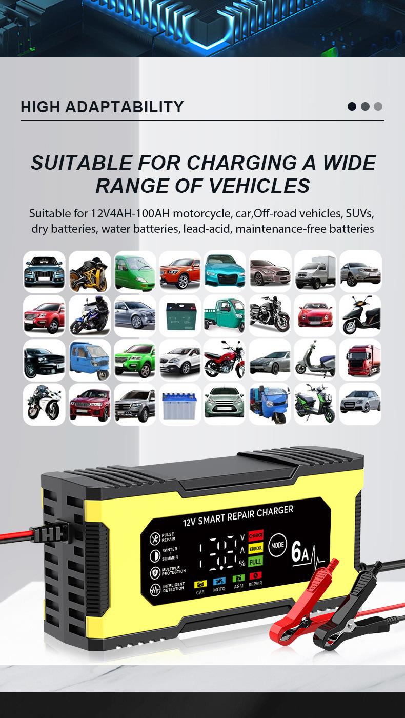 Compre Carregador de bateria de motocicleta 12V6A Carregador de bateria de carro Carregador de bateria de reparo inteligente 12V no atacado no Joom.pro