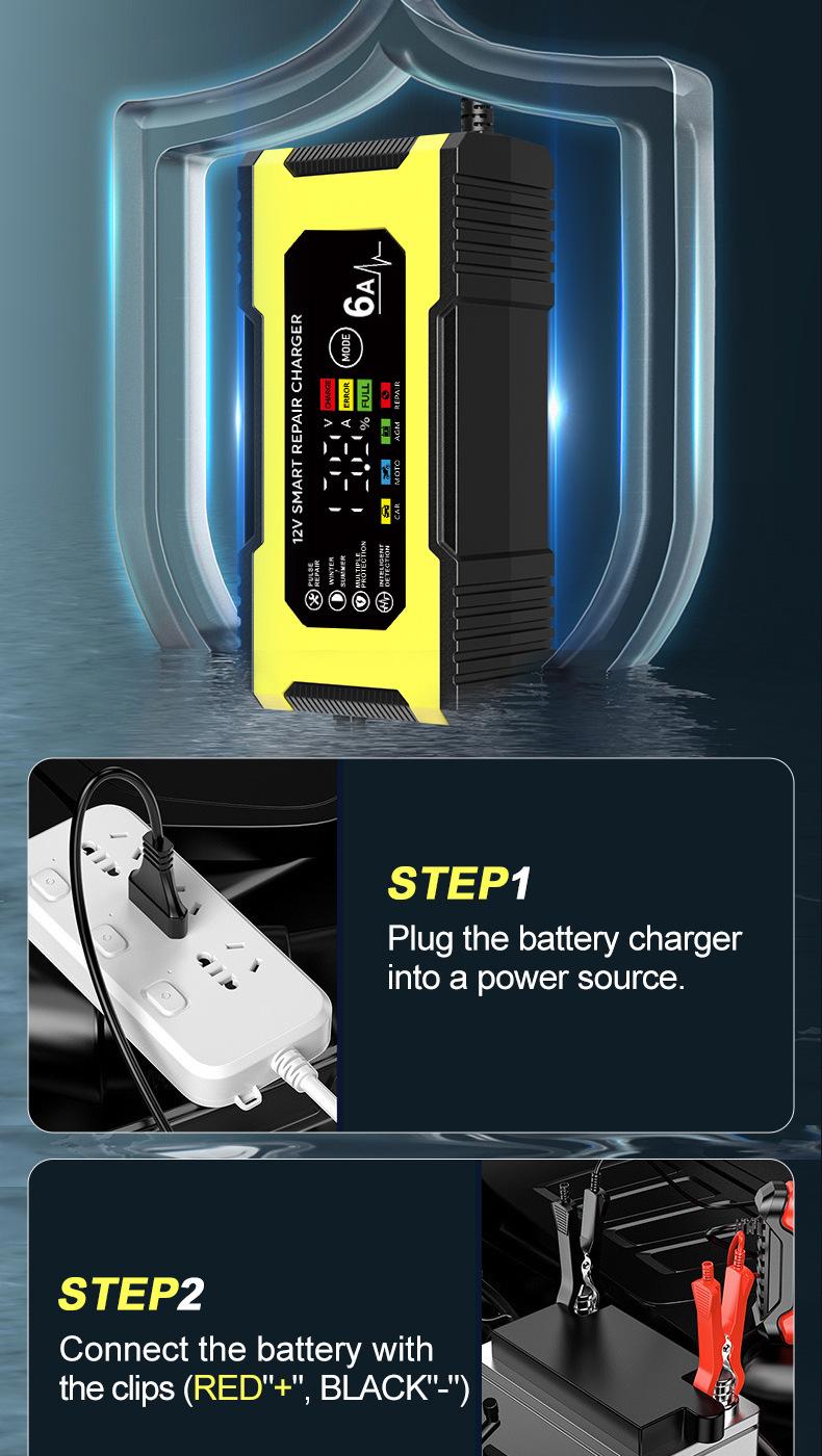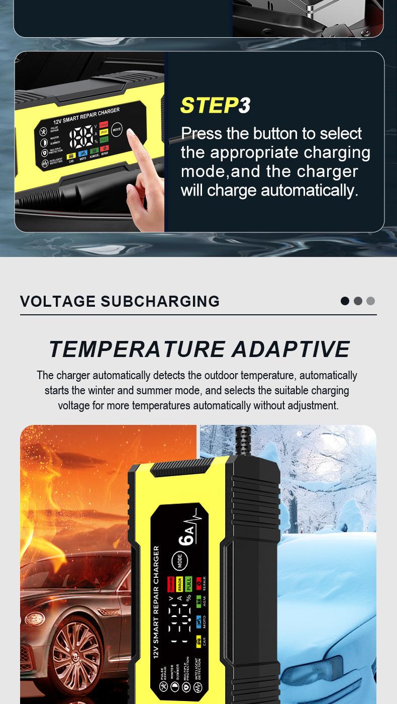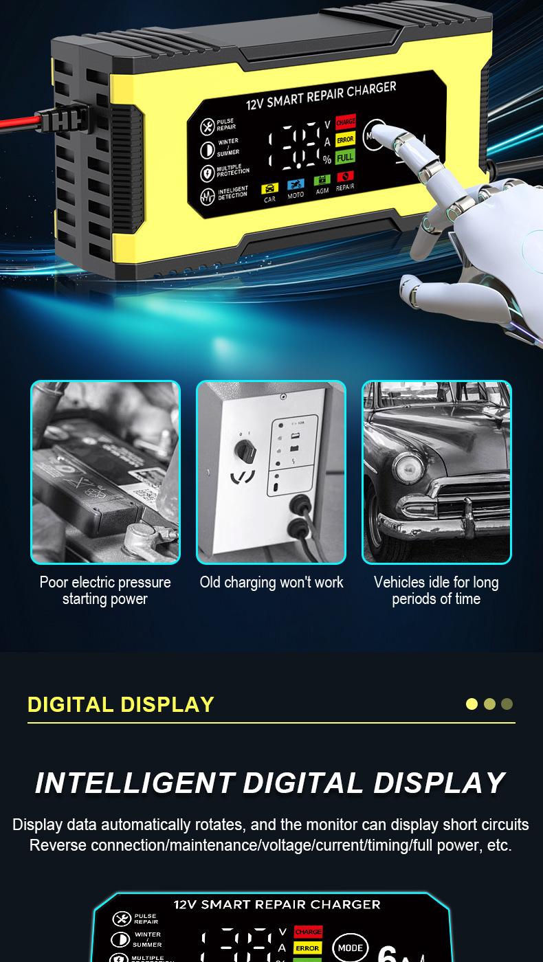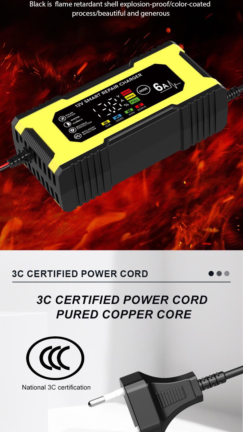 Compre Carregador de bateria de motocicleta 12V6A Carregador de bateria de carro Carregador de bateria de reparo inteligente 12V no atacado no Joom.pro
