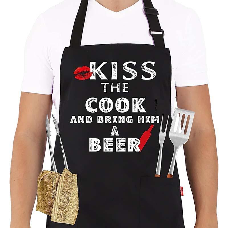 Avental de Poliéster de Pescoço Pendurado Transfronteiriço Amazon Casa Cozinha Churrasco Restaurante Assar Estampa de Letras Avental Impermeável à Prova de Óleo
