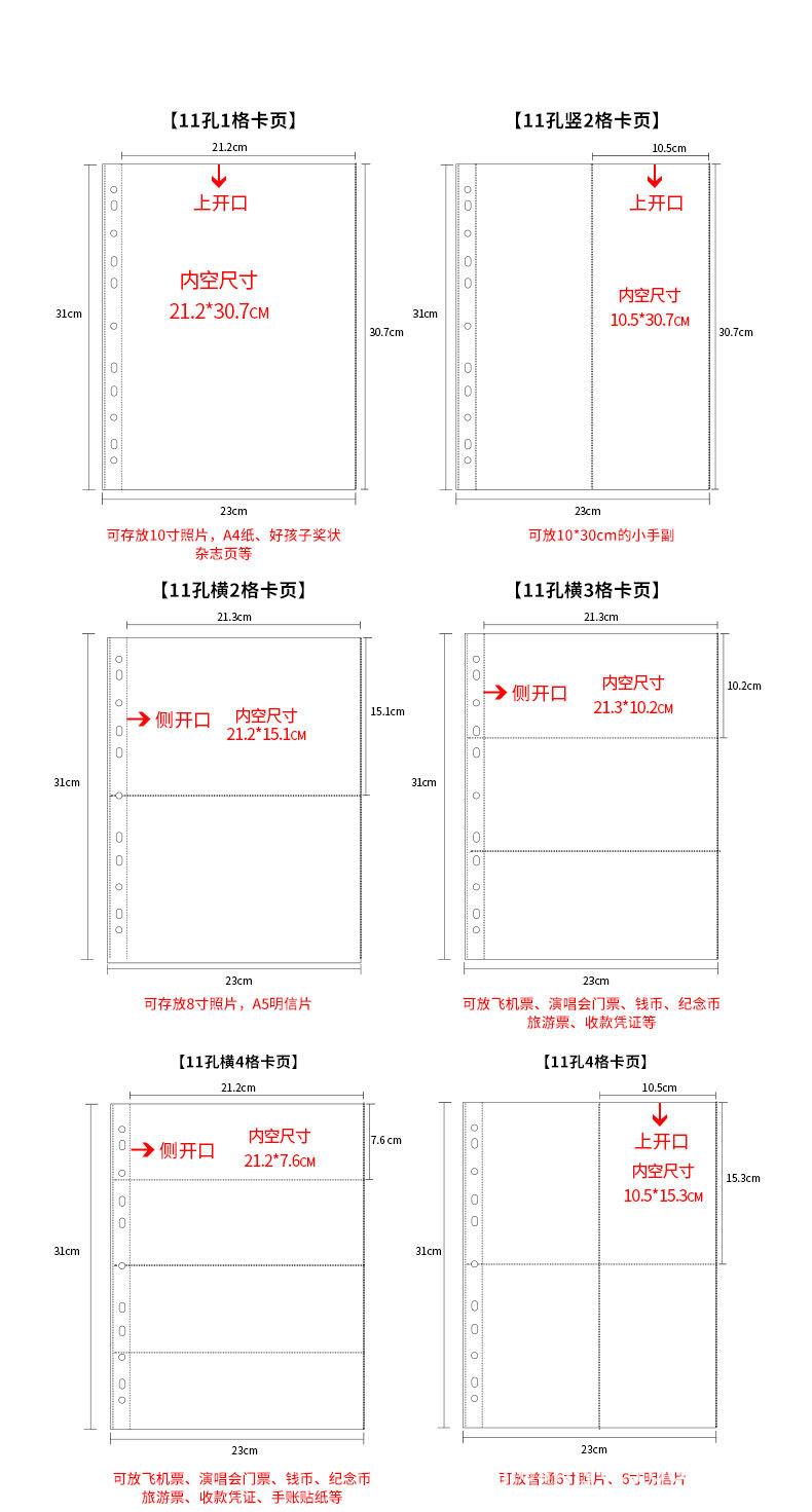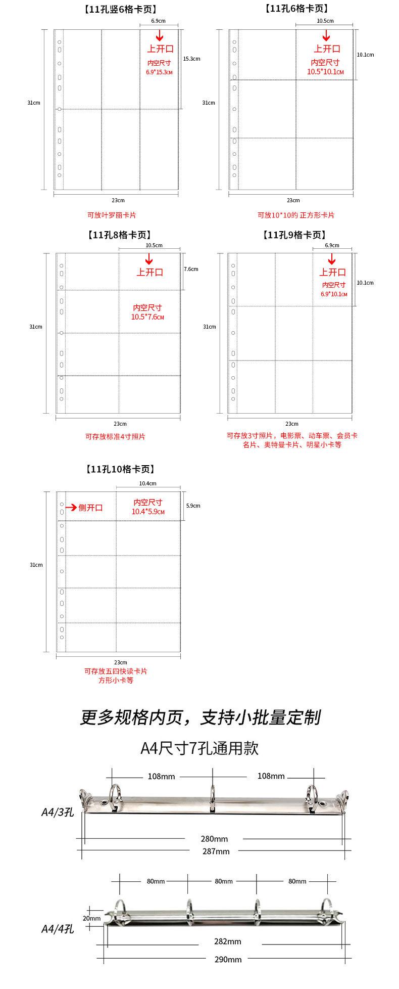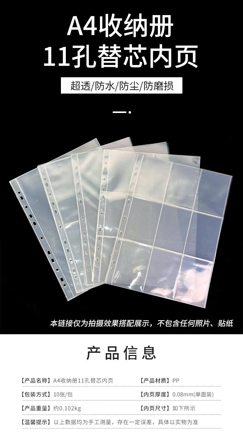 Small a4 11-hole 9-grid card page with 10 sheets on one side 31#, A4 4 holes 1 grid card page 10 sheets 33#, A...