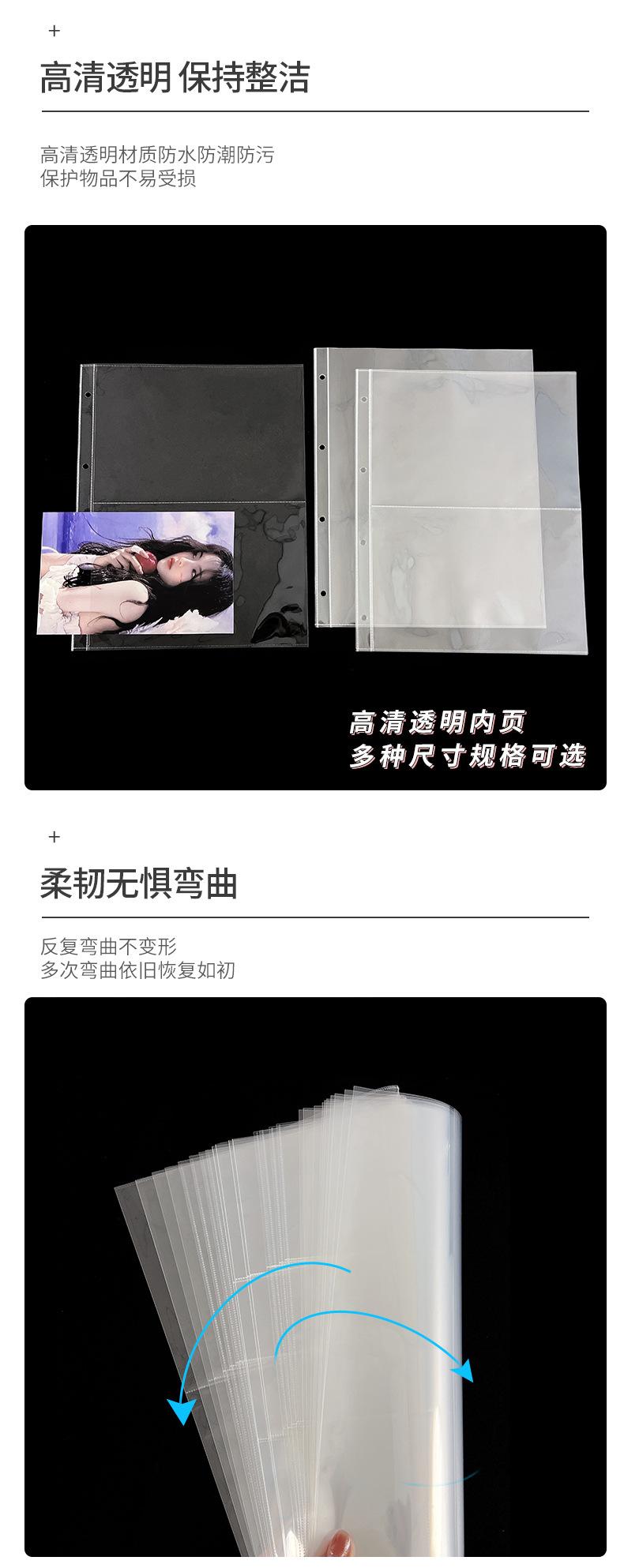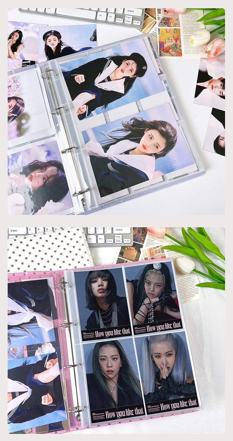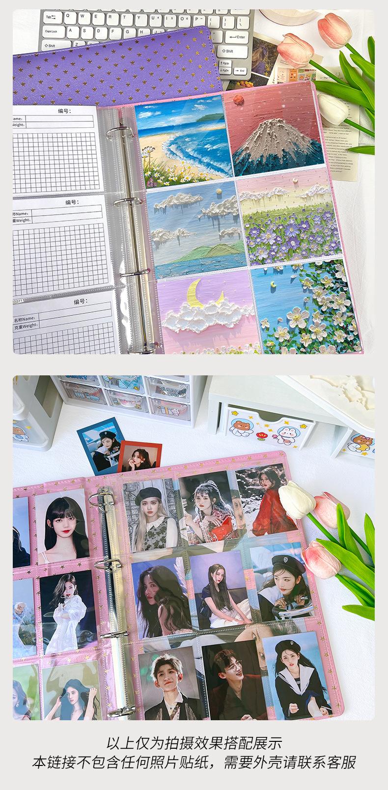 Ins Wind Álbum de folhas soltas transparente de 11 furos Página interna Álbum de 3 polegadas com perseguição de estrelas Cartão pequeno Álbum de armazenamento de 9 grades Cartão de grande capacidade Página