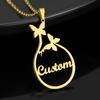 [Costume privado] Aço inoxidável criativo cauda borboleta pingente chapeamento 18K ouro nome personalizado colar