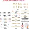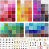 60.000 peças de miçangas de vidro de 2 mm, contas de letras, contas de coração, contas de rosto sorridente, contas de mau-olhado, conchas brancas, diferentes estilos de acessórios de ouro, anéis de salto, fivelas, fechos de lagosta, tesouras, pinças, agulhas de enfiar e fios de cristal