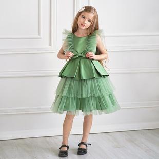 2023 vestido infantil vestido de princesa comércio exterior vestido infantil manga bufante arco vestido infantil pequeno traje de desempenho do dia das crianças