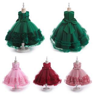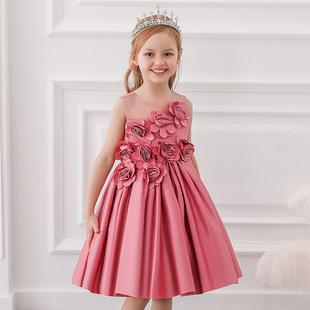 Vestido infantil transfronteiriço de comércio exterior, vestido de princesa, vestido de performance de piano para meninas, vestido de flor para meninas