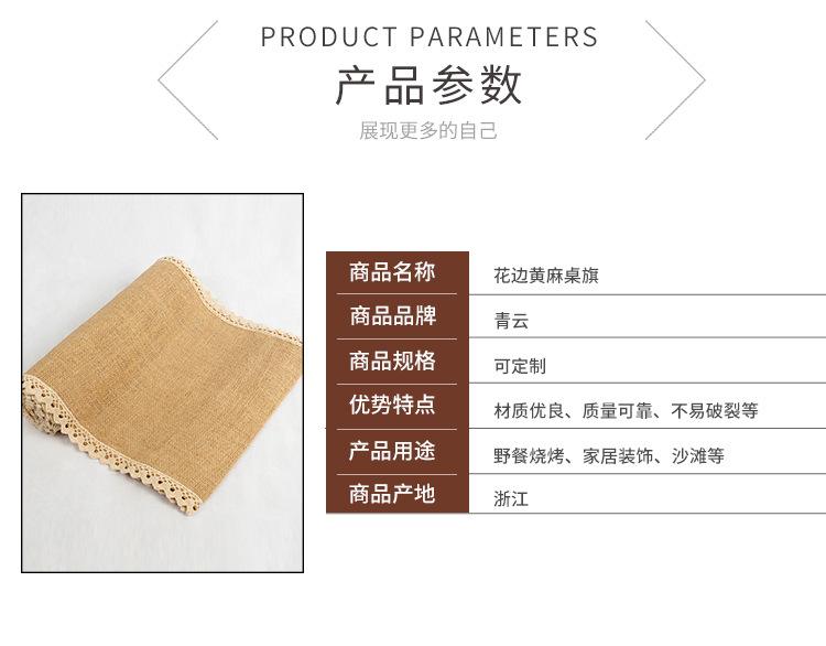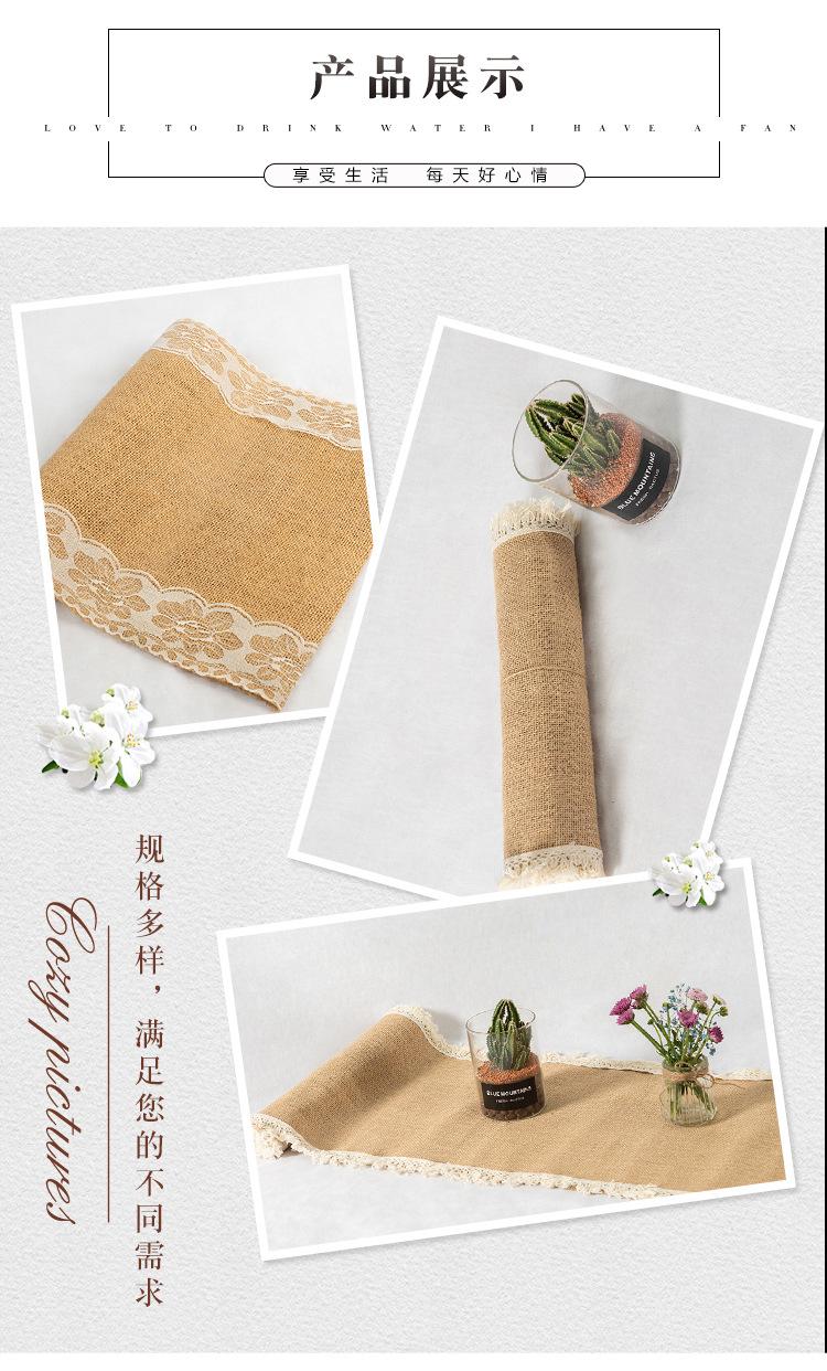 Bandeira de mesa estilo europeu, cânhamo original, cor original, renda de juta, bandeira de mesa personalizada, cor pura, restaurante, juta, decoração para casa, bandeira de mesa