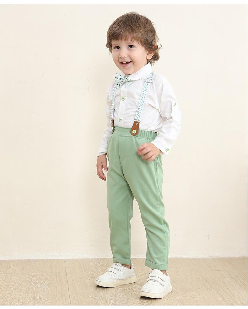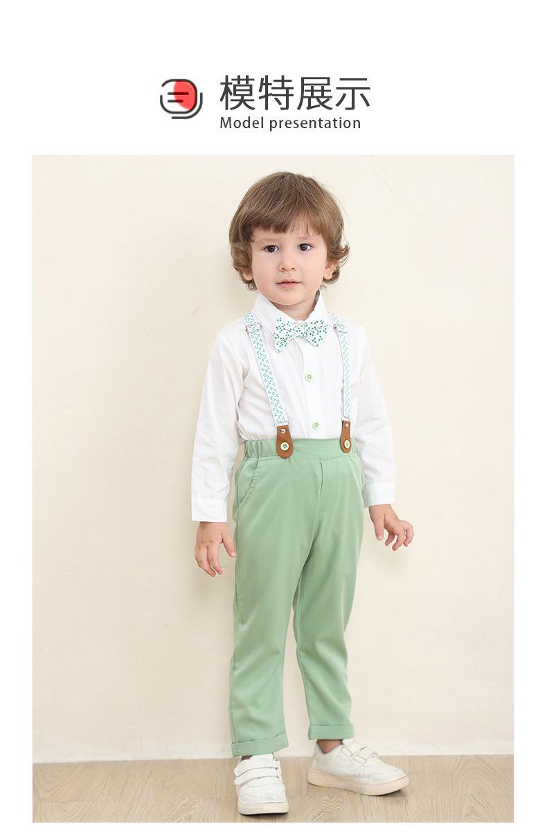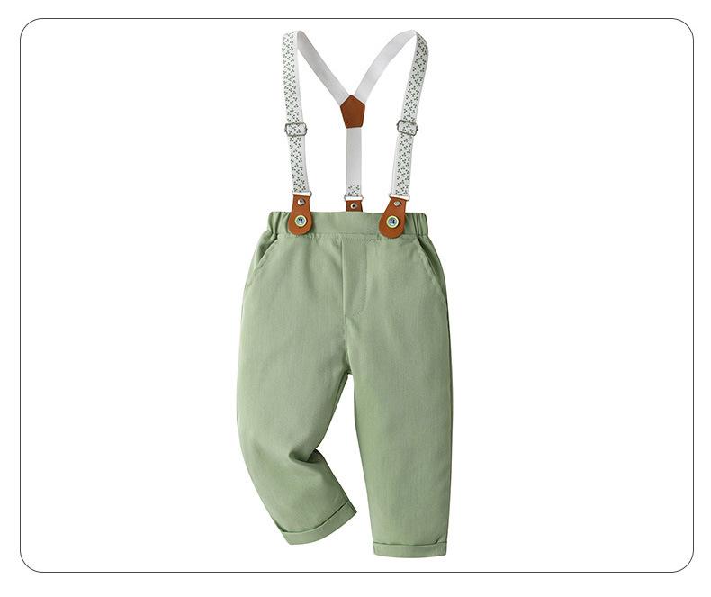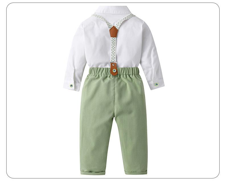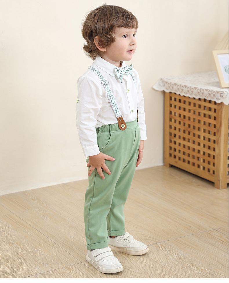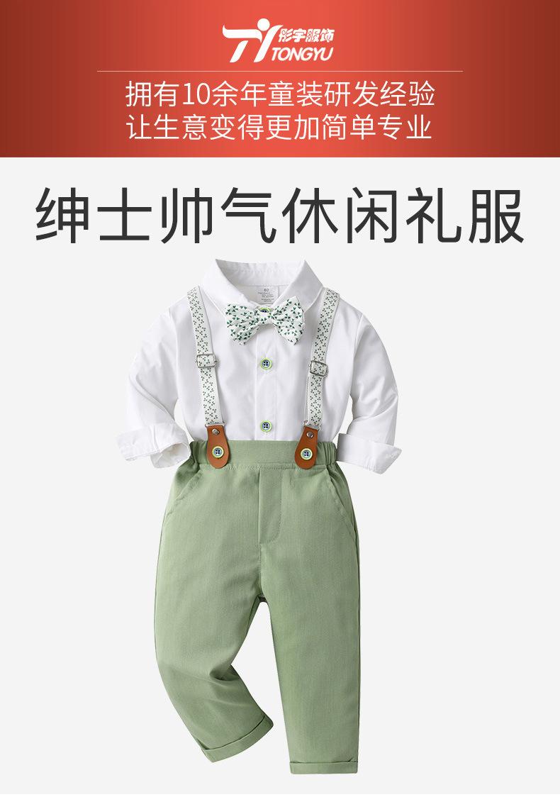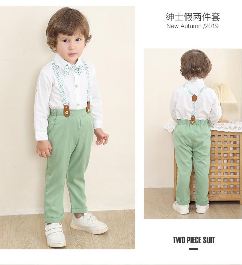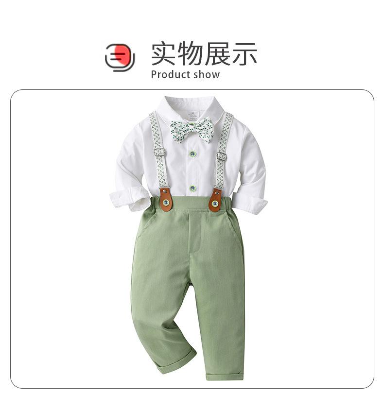 Tamanho 80-Tamanho 90-Tamanho 100-Tamanho 110-Tamanho 120-Tamanho 130 Roupas infantis de primavera e outono para exportação, conjunto infantil de duas peças com jardineira, roupas de bebê, smoking de cavalheiro para menino, roupas de outono para menino