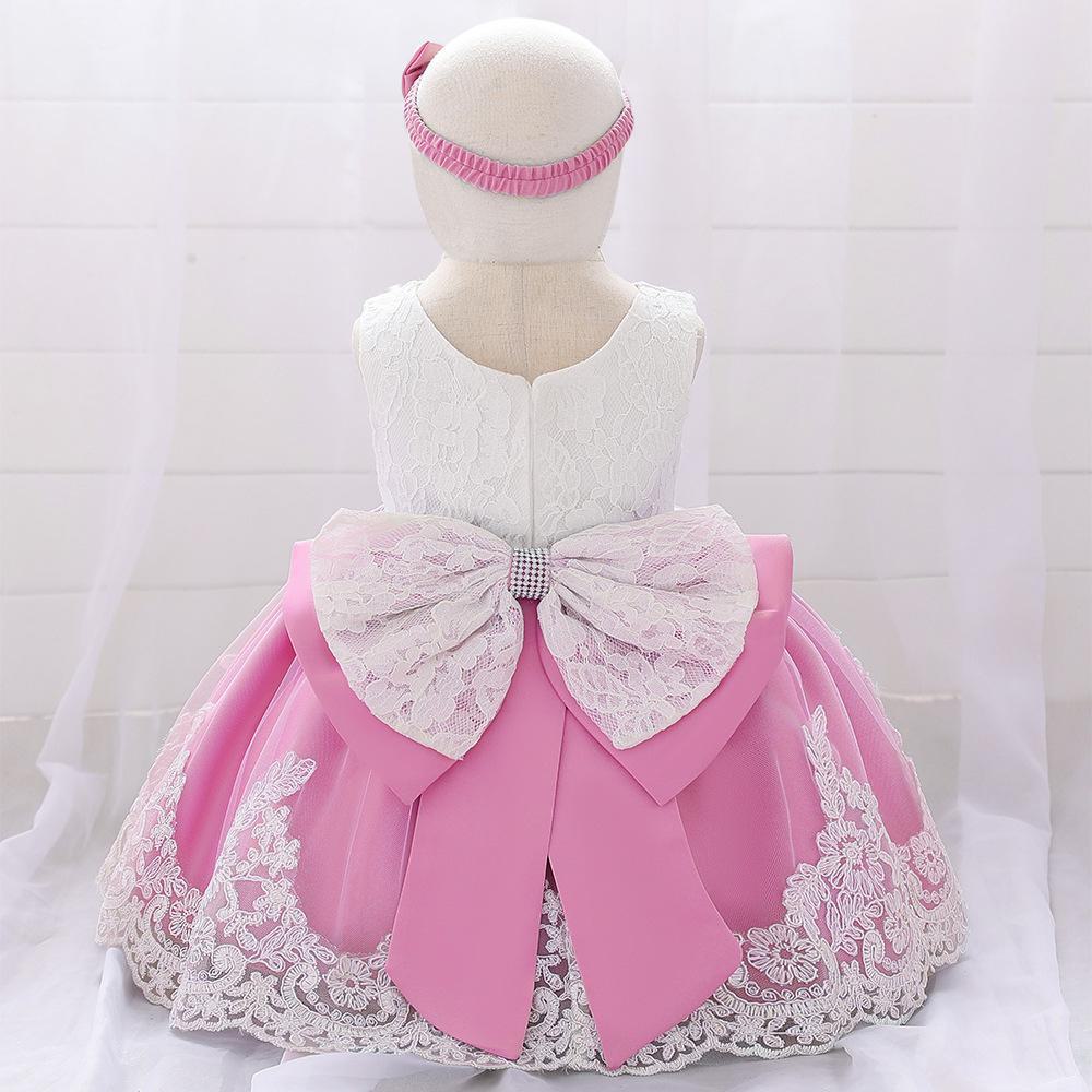 Vestido infantil europeu e americano, vestido de princesa para meninas, saia de tule de malha, florista, laço sem costas, traje de apresentação diária