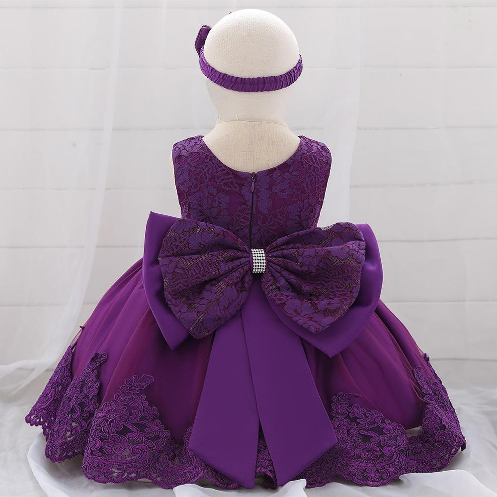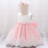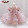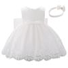 Amazon flor menina casamento vestido menina arco manga curta cor sólida malha tule saia vestido de princesa de um ano de idade¥51,0¥51,00