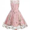 Vestido europeu e americano novo para meninas floridas, decote em v, sem mangas, saia de tule de malha, vestido de aniversário, vestido de princesa de um ano