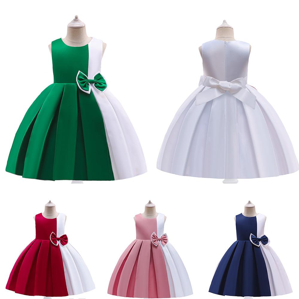 Vestido de Princesa com Laço Transfronteiriço AliExpress Vestido Infantil Colorido Vestido Infantil Infantil 1º de Junho Vestido de Apresentação para Anfitriã Vestido de Menina