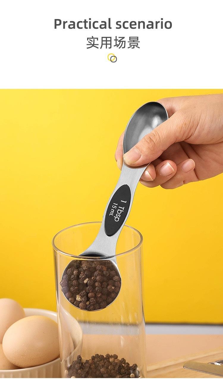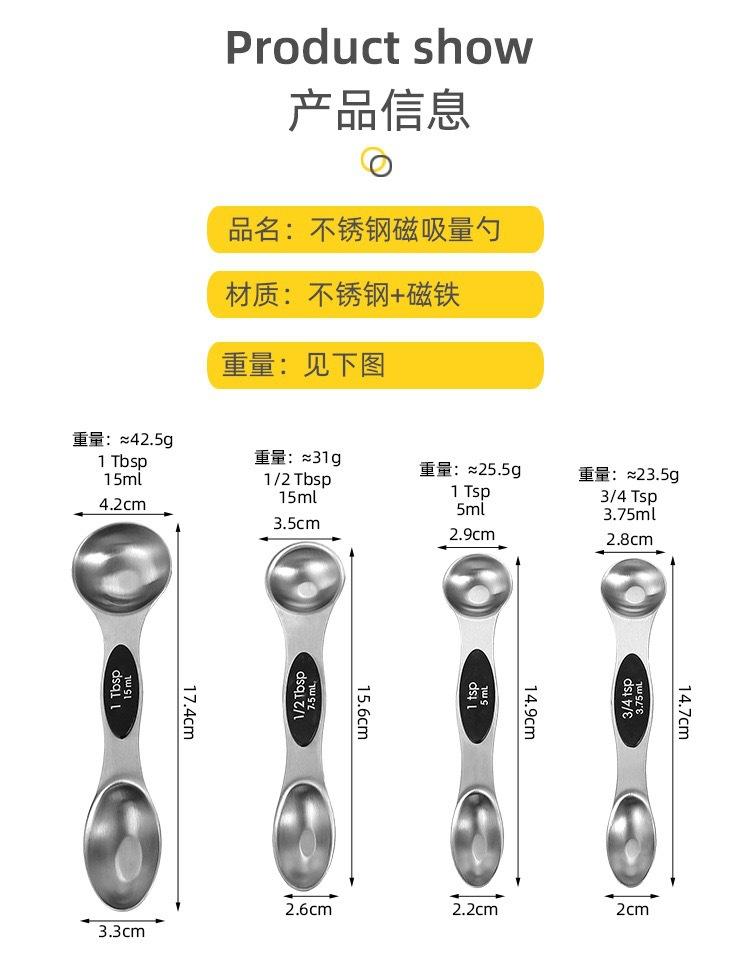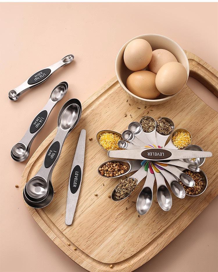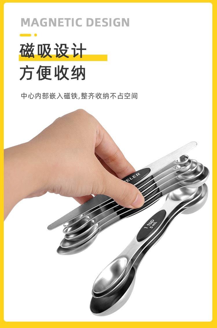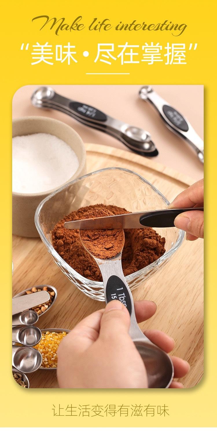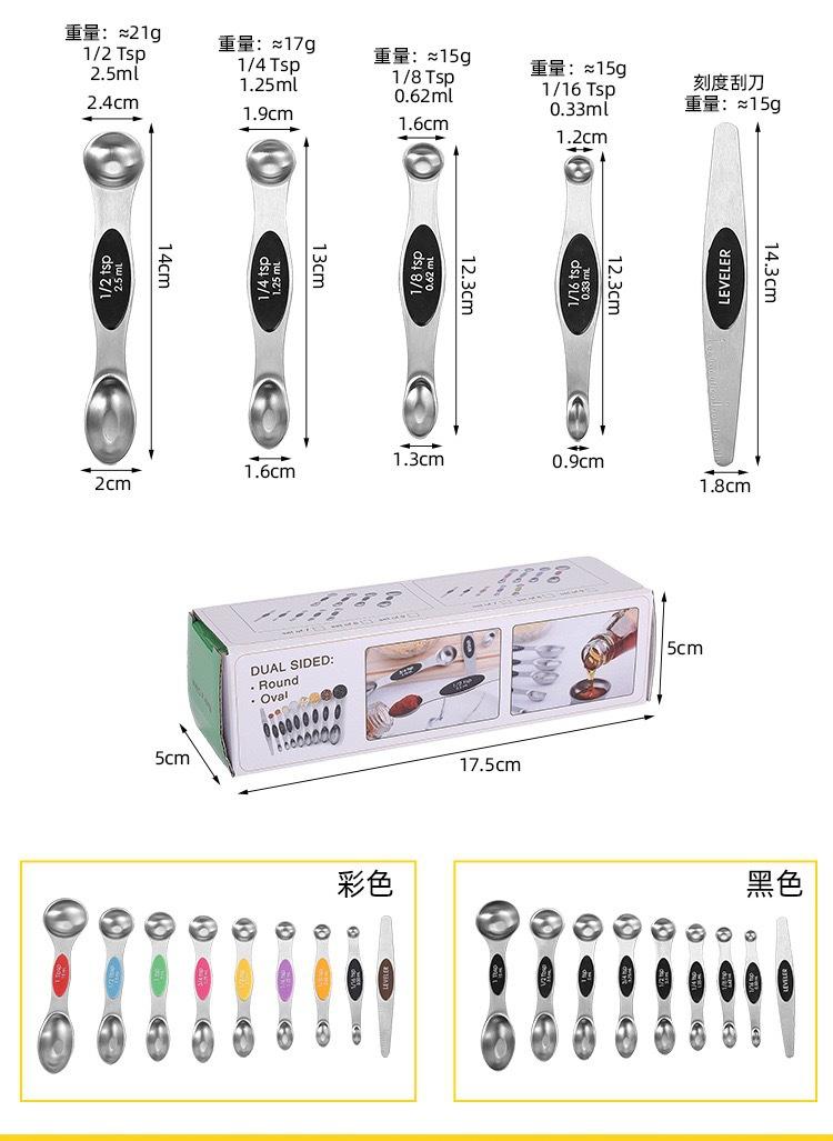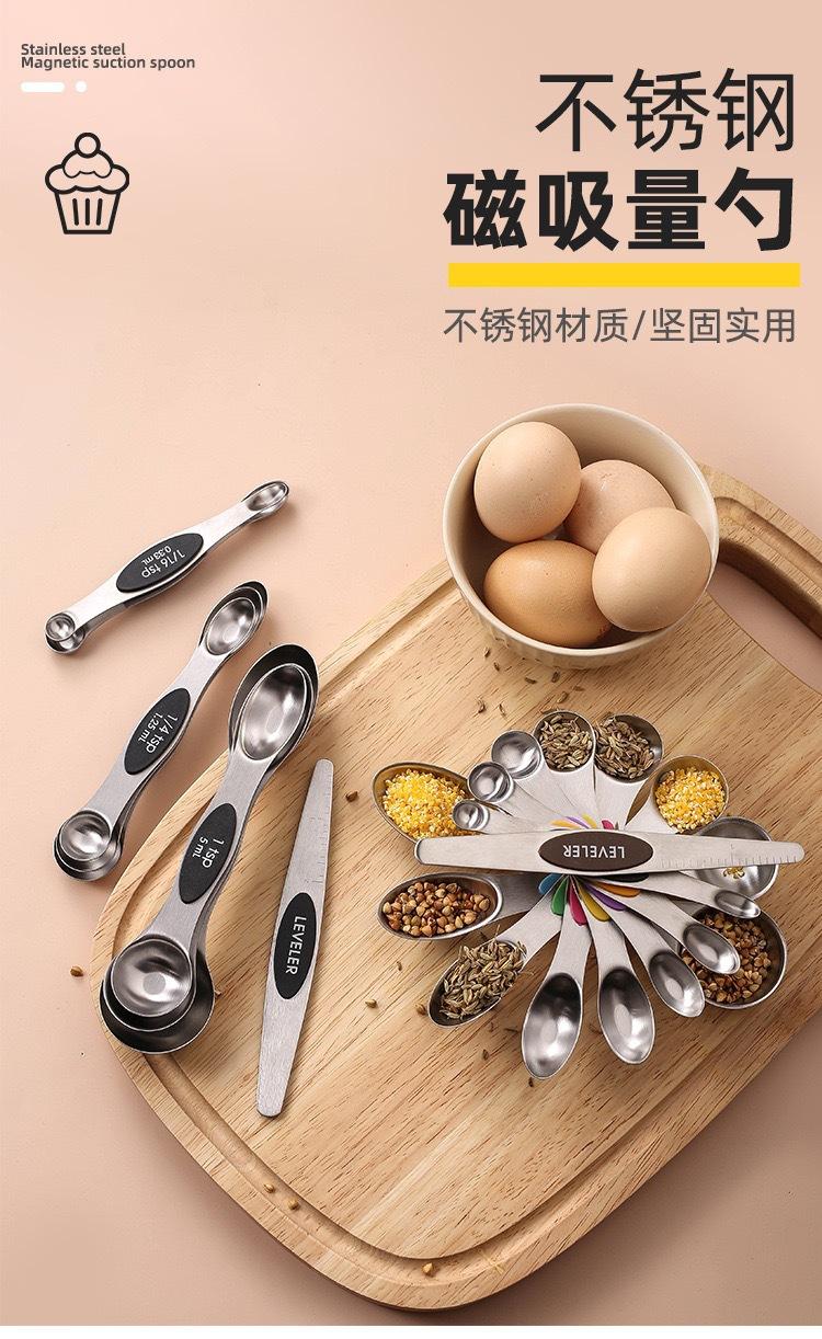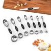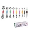 Em estoque fornecimento magnético de cabeça dupla colher de medição 9 peças escala de medição de armazenamento de tempero colher de medição ferramenta de cozimento de aço inoxidável