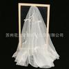 Véu de Noiva Casamento Curto Camadas Duplas Fita Registro de Casamento Celebridade da Internet Adereços para Fotos Vestido de Noiva Adereços de Cabeça Véus Serpentinas