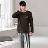 Pijama masculino de algodão puro, primavera e outono, roupa casual para jovens, tamanho grande, novo, roupa de verão para casa