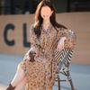 Feminino 2024 Nova Primavera e Outono Estilo Francês Retro Tea Break Estilo Saia de Cintura Apertada Slim-fit Manga Comprida Vestido Floral