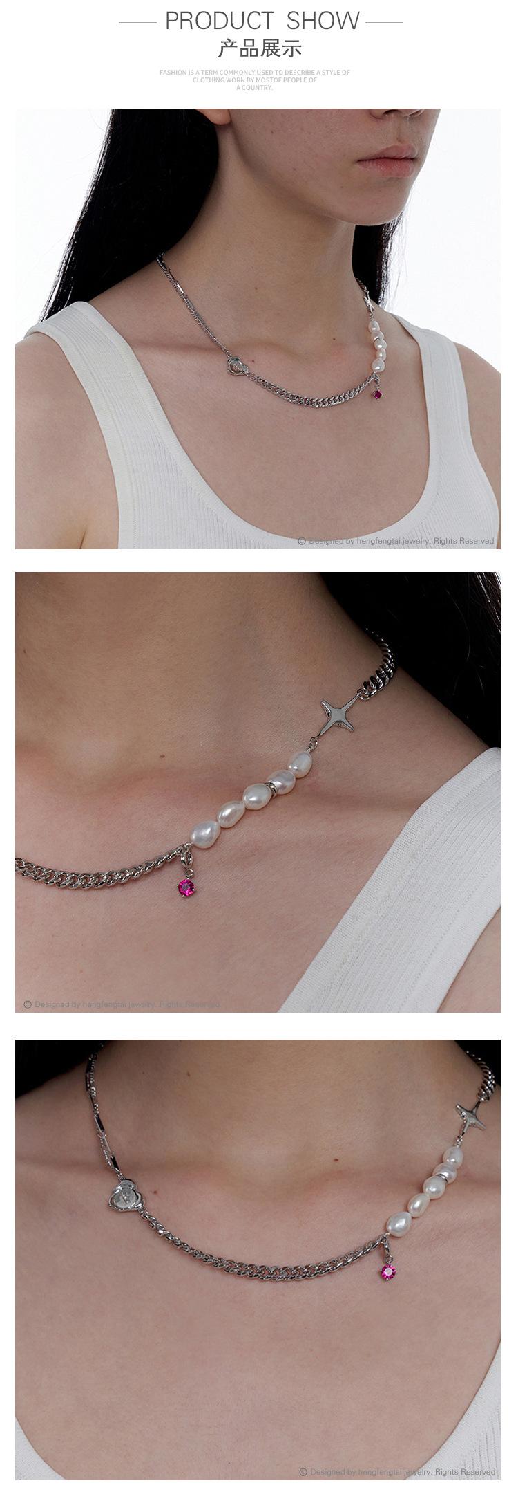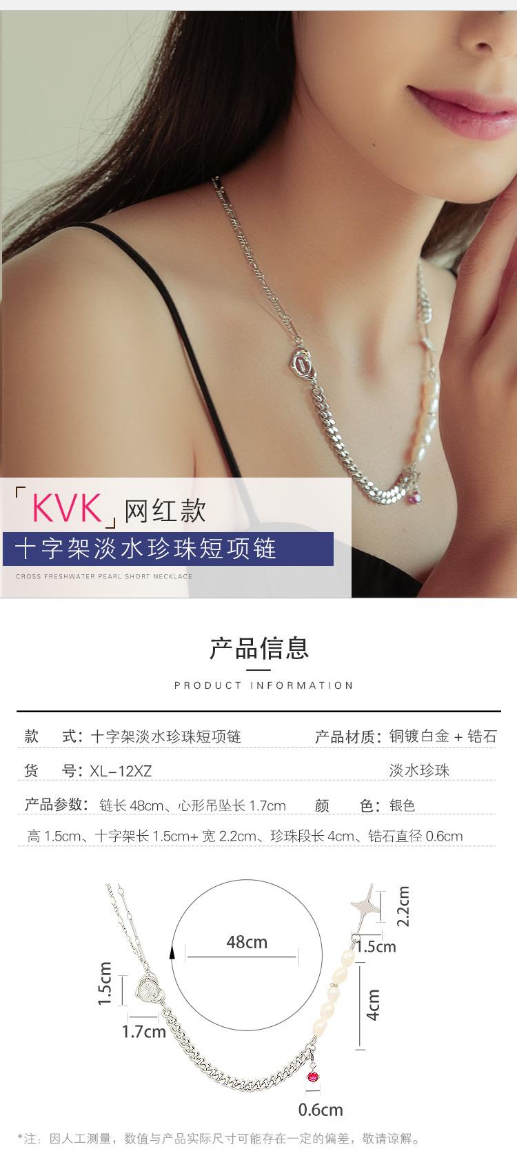 Compre Design de Nicho Kvk Pérola Barroca de Água Doce Cruz Colar Curto Assimétrico Corrente para Clavícula Feminina Colar de Coração no atacado no Joom.pro