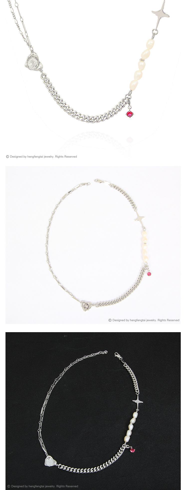 Design de Nicho Kvk Pérola Barroca de Água Doce Cruz Colar Curto Assimétrico Corrente para Clavícula Feminina Colar de Coração