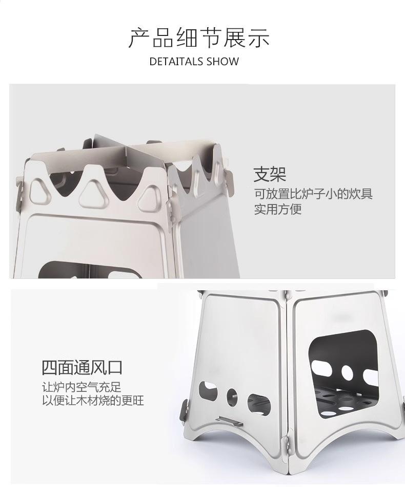 Fogão a lenha portátil para exterior ultraleve, acampamento ao ar livre, à prova de vento, fogão para piquenique, churrasco doméstico