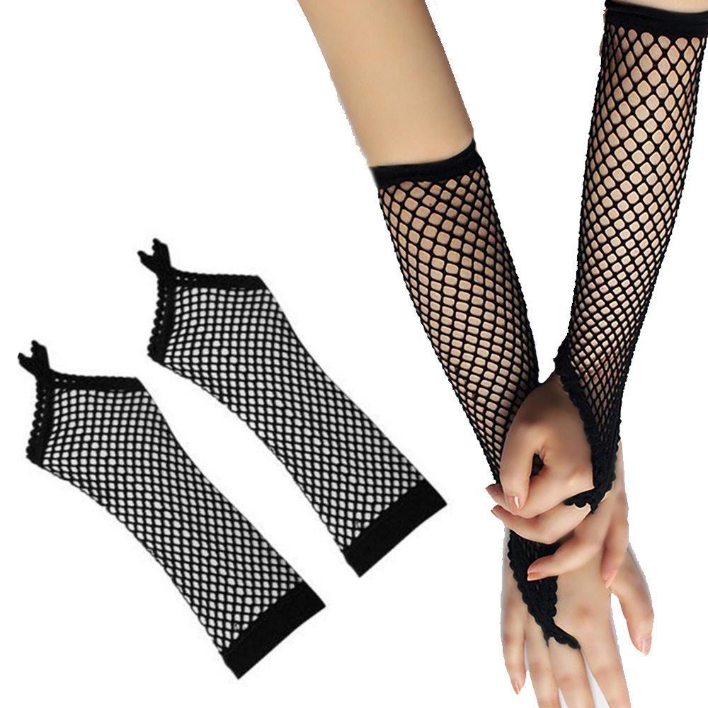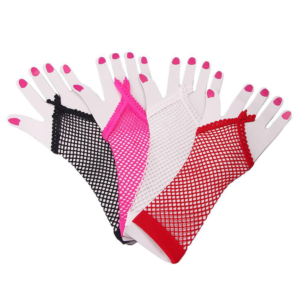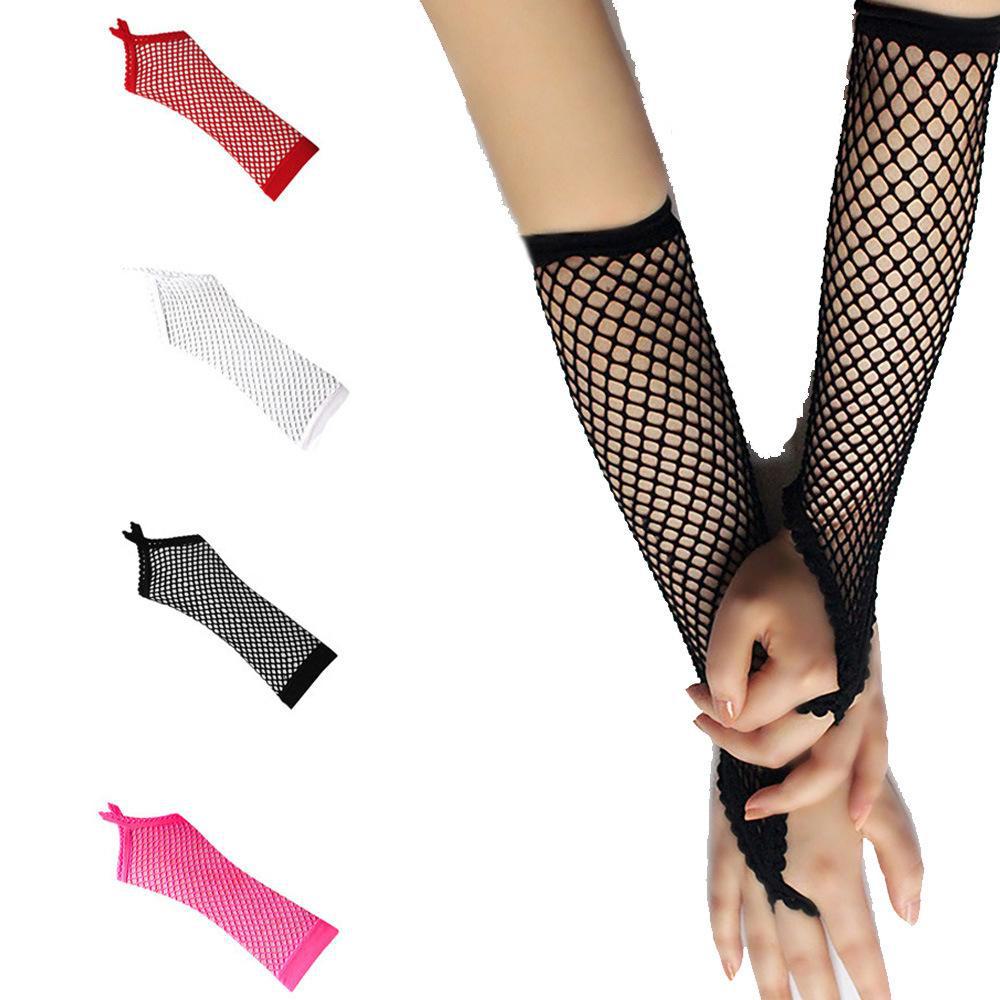 Rede de pesca oca, renda, luvas de gancho, boate, discoteca, luvas, dança, palco, mesa, performance, punk, multicolorido, luvas, comprido, longo