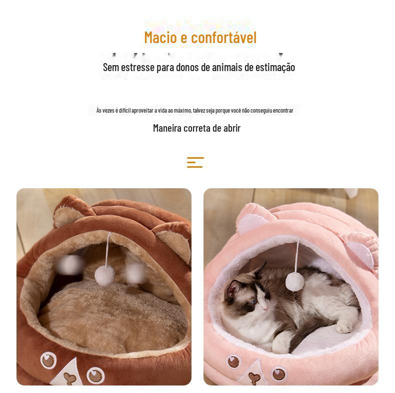 Ninho Fofo de Iurte para Animais de Estimação Semicerrado Ninho de Urso para Gatos Engraçado Gato Outono e Inverno Quente Ninho de Cachorro Fabricante Ninho Quente