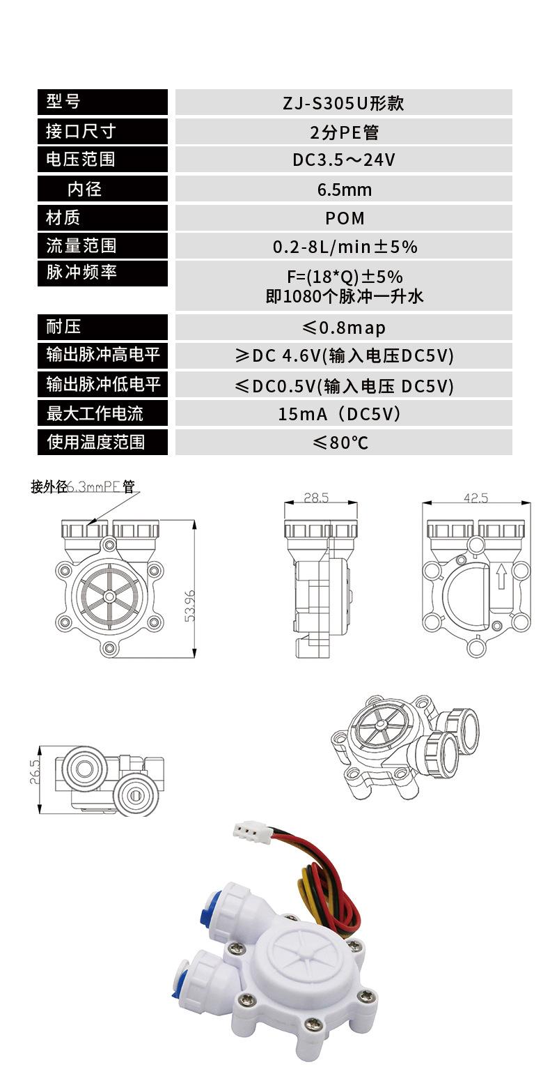 Medidor de vazão Micro Hall, dispensador de água para máquina de café, sensor de fluxo de água, interface rápida Pagoda, fabricante